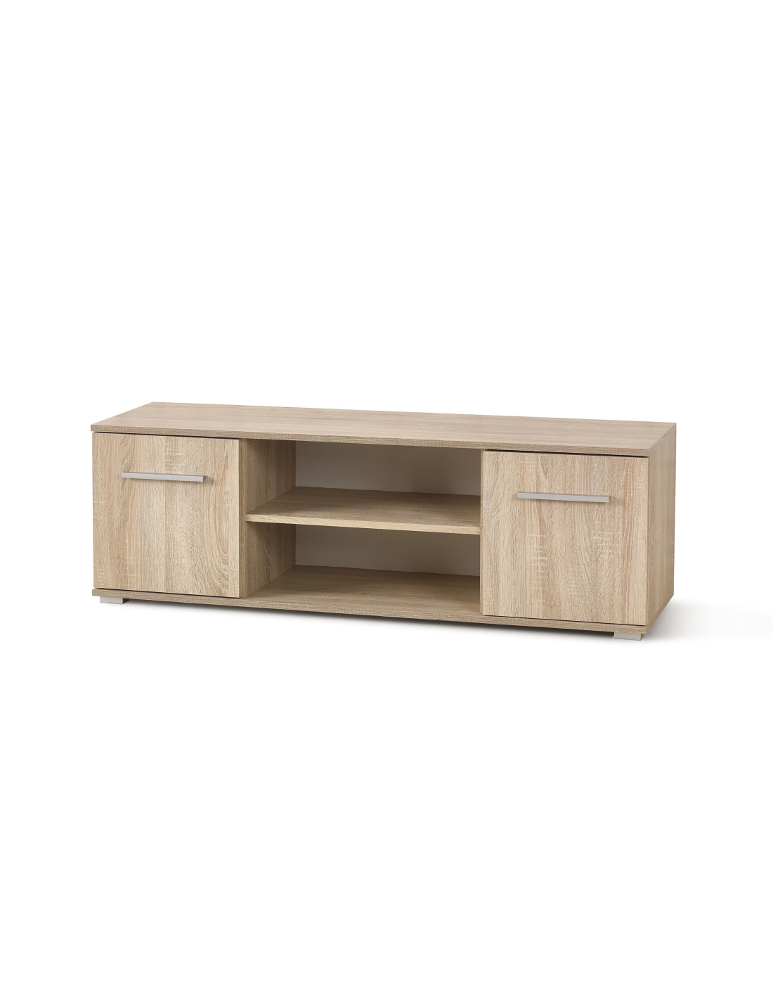 Szukasz mebla, który spełni Twoje oczekiwania? Szafka RTV LIMA RTV1 to wyjątkowe połączenie minimalistycznego designu z funkcjonalnością. Jej prostokątny kształt oraz ciepły kolor dębu sonoma sprawiają, że staje się eleganckim akcentem w każdym wnętrzu. Dwie zamykane szafki po bokach oraz dwie otwarte półki na środku zapewniają wystarczającą przestrzeń na sprzęt RTV i dekoracje, a metalowe uchwyty dodają nowoczesnego charakteru.