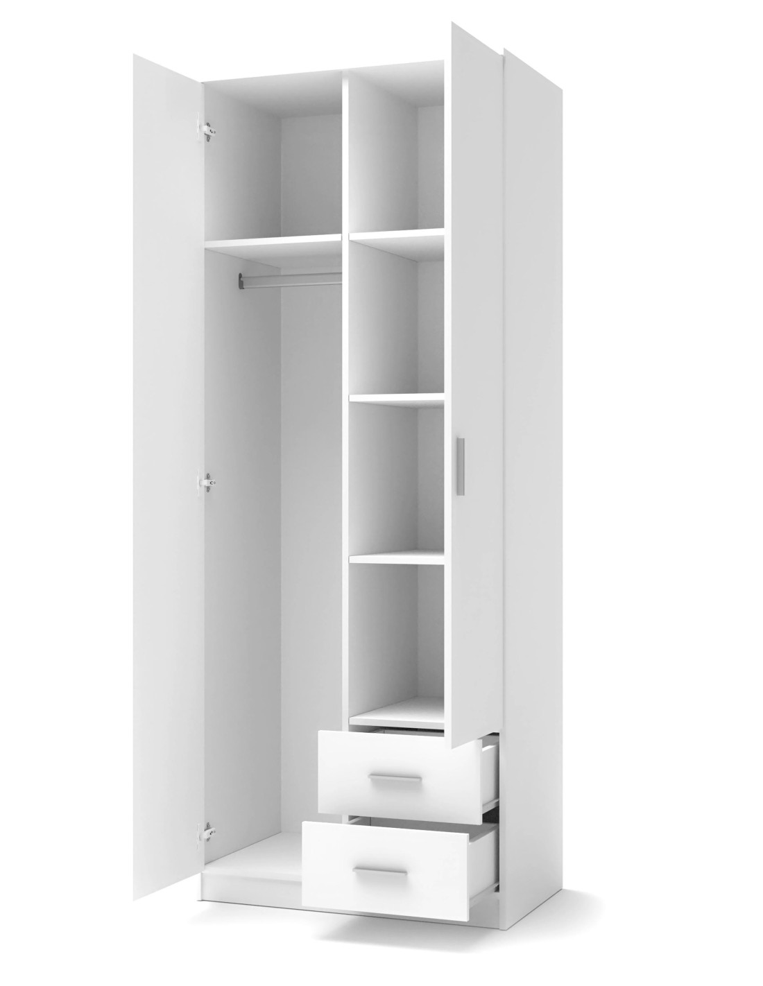 LIMA S-2 Szafa 80/52/205 cm z 2 Szufladami Biały Połysk - Funkcjonalna