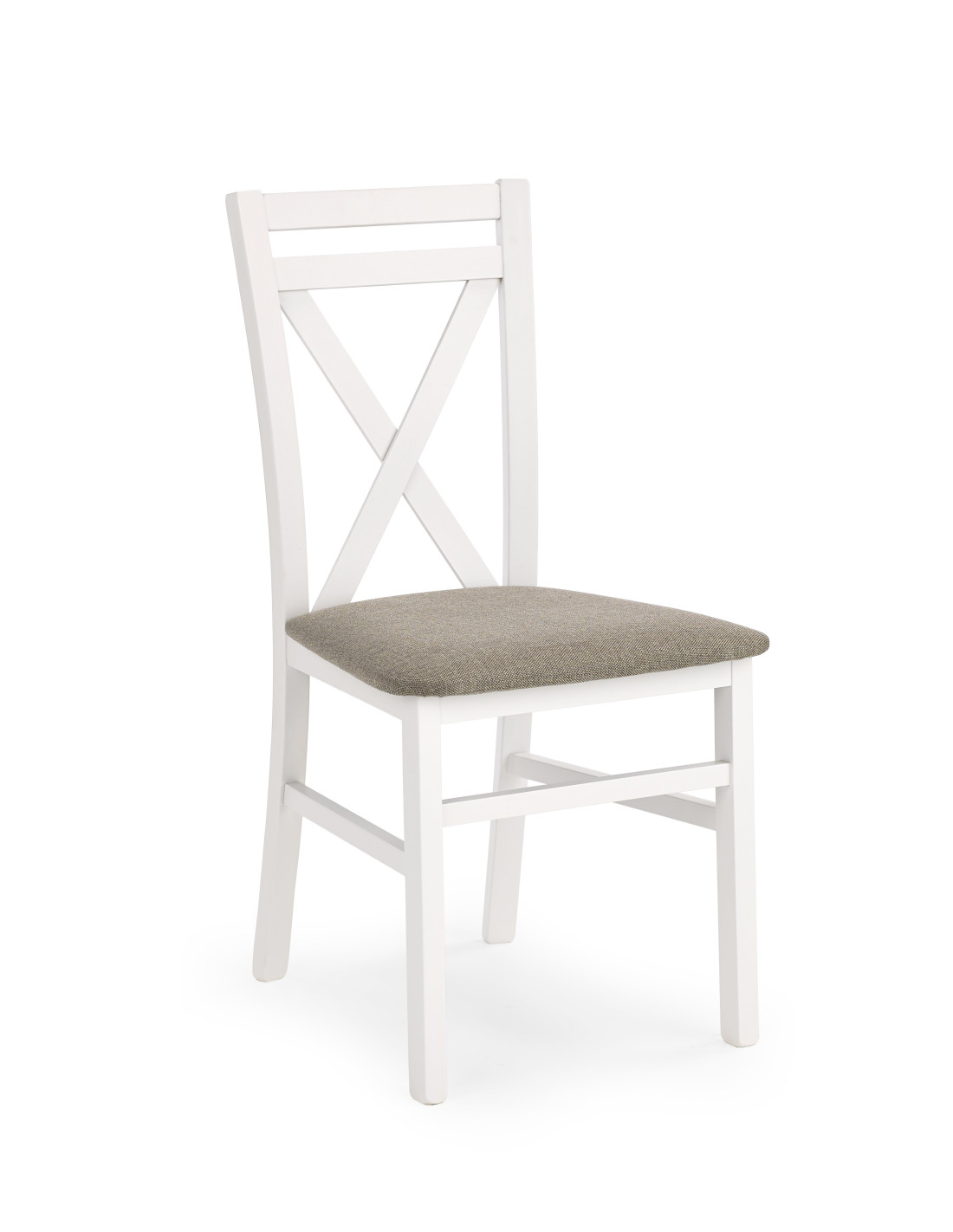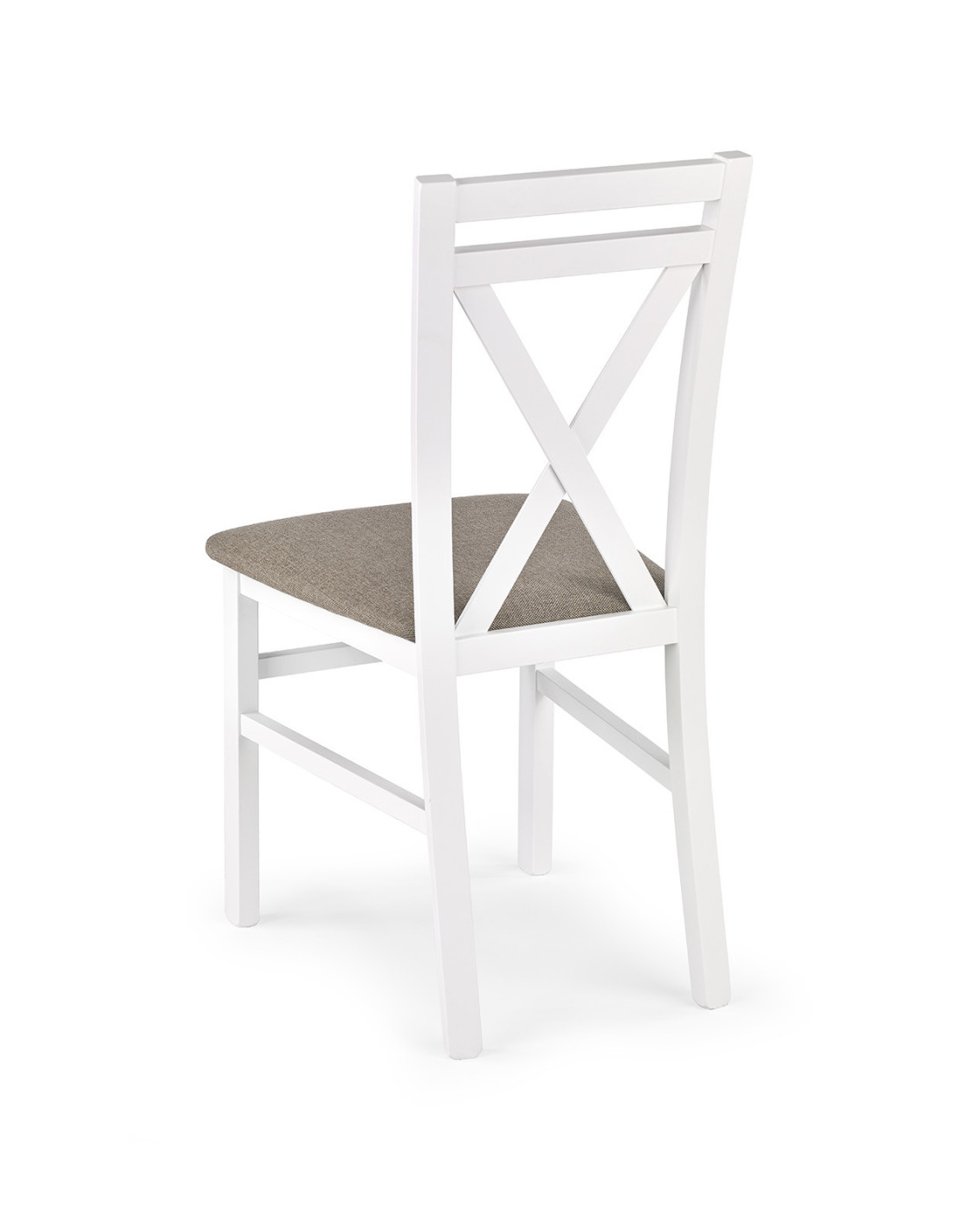 Stwórz doskonałe wnętrze z krzesłem DARIUSZ, które łączy w sobie klasyczną elegancję i praktyczność. To białe drewniane krzesło z krzyżakowym oparciem w kształcie litery "X" to znakomity wybór dla osób poszukujących stylowego, a zarazem funkcjonalnego mebla. Obite szarym siedziskiem, zapewnia wygodę i komfort podczas każdego spotkania przy stole.