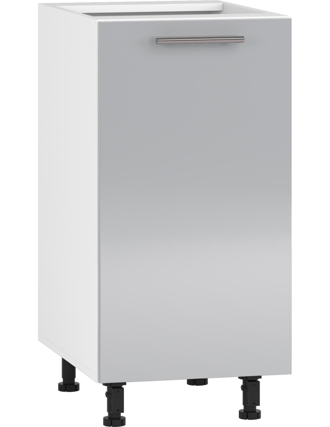 Dzięki regulowanym nóżkom, szafka może mieć wysokość od 72 do 82 cm, co zapewnia komfort użytkowania. Wyposażona w jedne drzwi na zawiasach z cichym domykiem, elegancki srebrny uchwyt oraz jedną praktyczną półkę, oferującą wystarczającą przestrzeń na wszystkie niezbędne akcesoria kuchenne. Szafka VENTO to godny polecenia wybór dla osób, które cenią sobie styl i funkcjonalność.