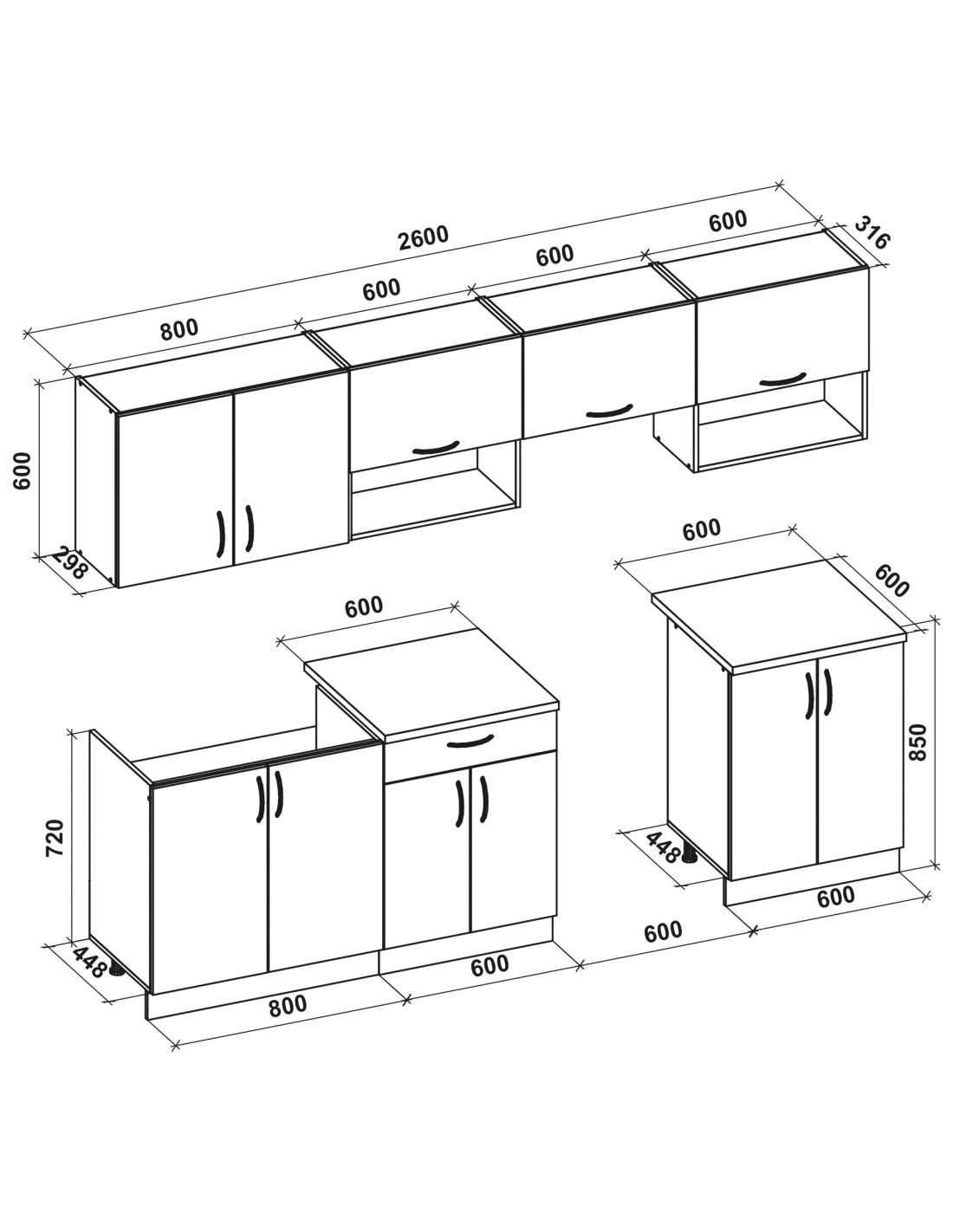 Wymiary i Specyfikacja - Zestaw Kuchenny VIOLA 260
