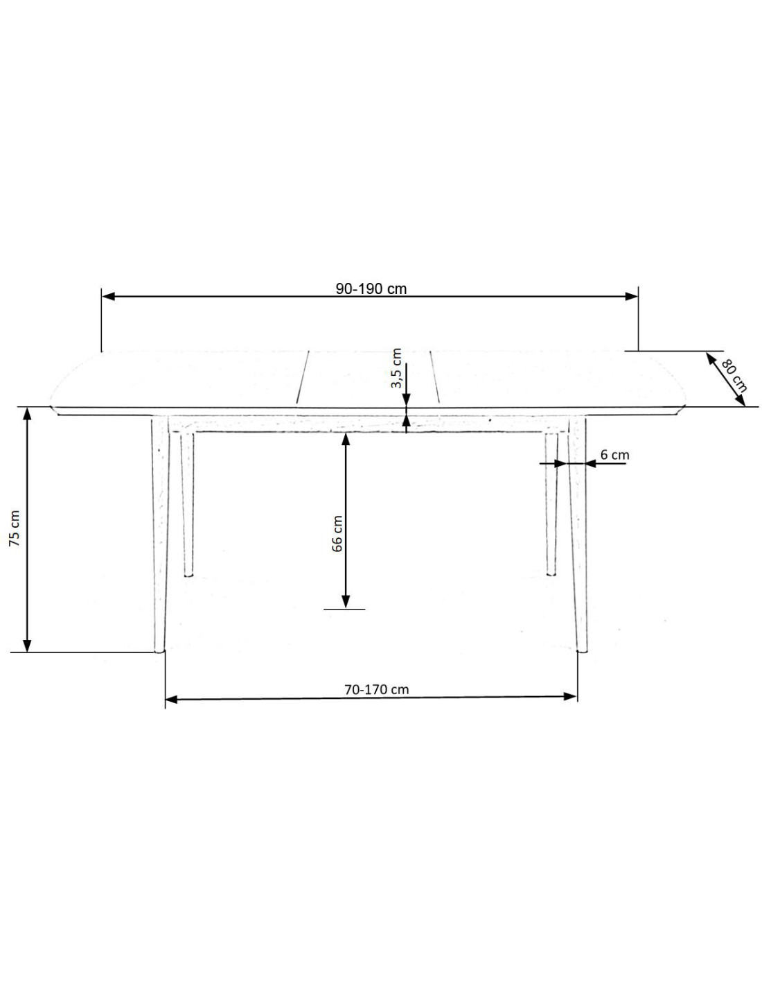 Ten rozkładany stół ma możliwość dostosowania długości od 90 cm do 190 cm, co czyni go godnym polecenia wyborem zarówno na codzienne posiłki, jak i większe spotkania. Wkładki przedłużające, które są dołączone do stołu, pozwalają na elastyczne dostosowanie jego wymiarów do aktualnych potrzeb, a prostokątny kształt z zaokrąglonymi rogami dodaje mu subtelnej elegancji.