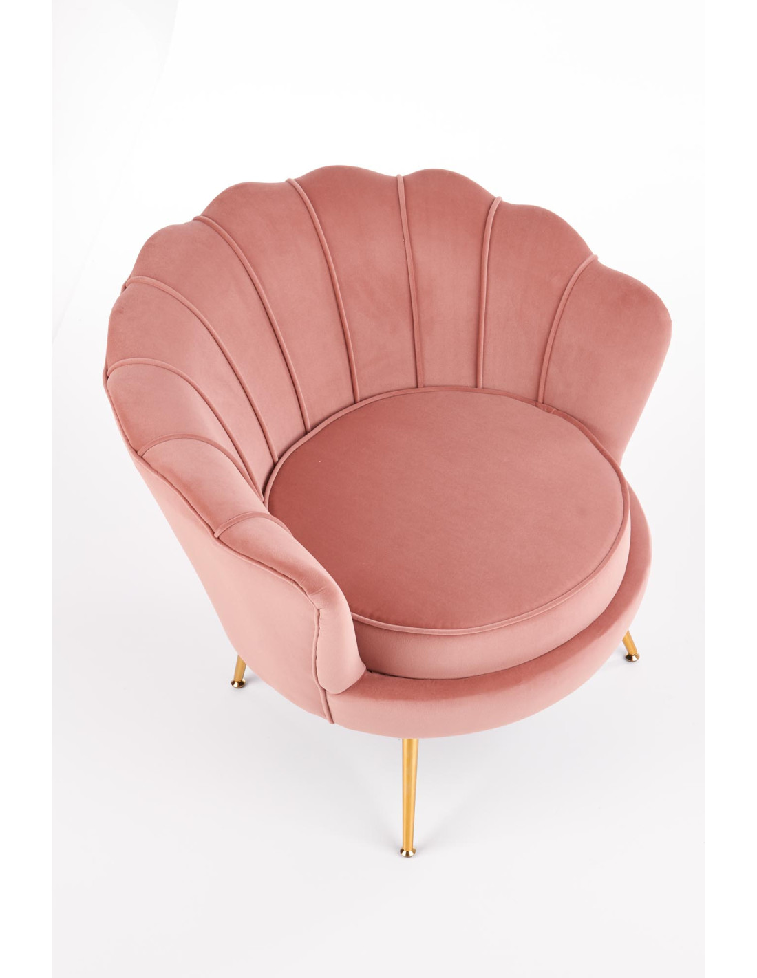 Aktualnie fotel AMORINITO dostępny jest w jasnoróżowym kolorze z złotymi nogami, co podkreśla jego elegancję.