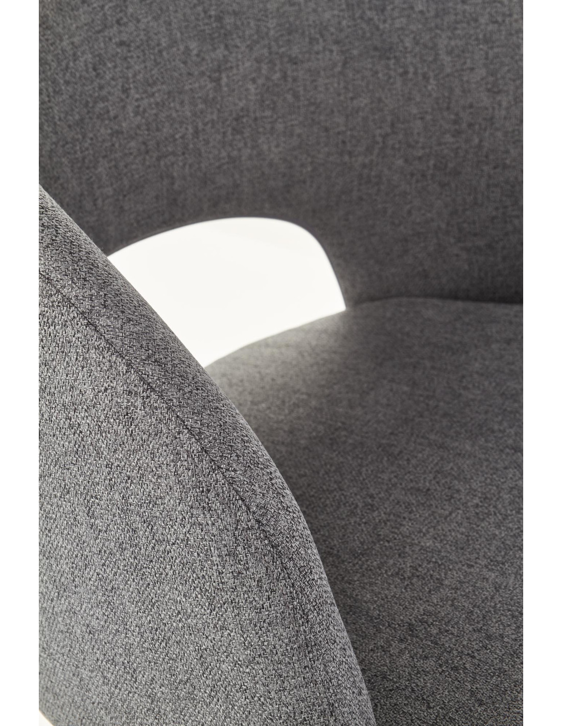 Krzesło wykonane jest z wysokiej jakości tkaniny oraz stali malowanej proszkowo, co zapewnia atrakcyjny wygląd i komfort.