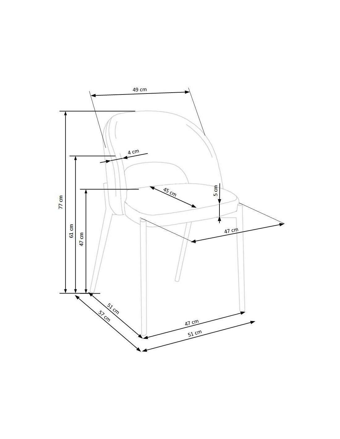 Metalowe nogi w kolorze czarnym, smukłe i lekko rozstawione, nadają krzesłu stabilność oraz elegancki charakter. Krzesło K373 to nie tylko mebel, ale także wyrazisty akcent, który ożywi Twoje wnętrze.