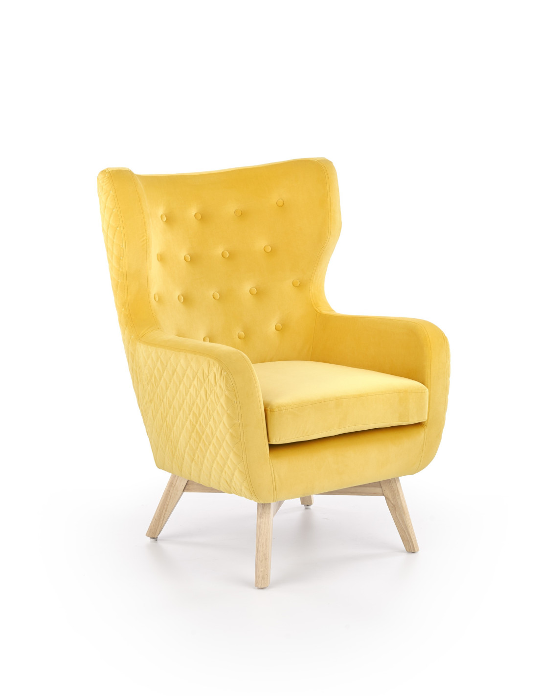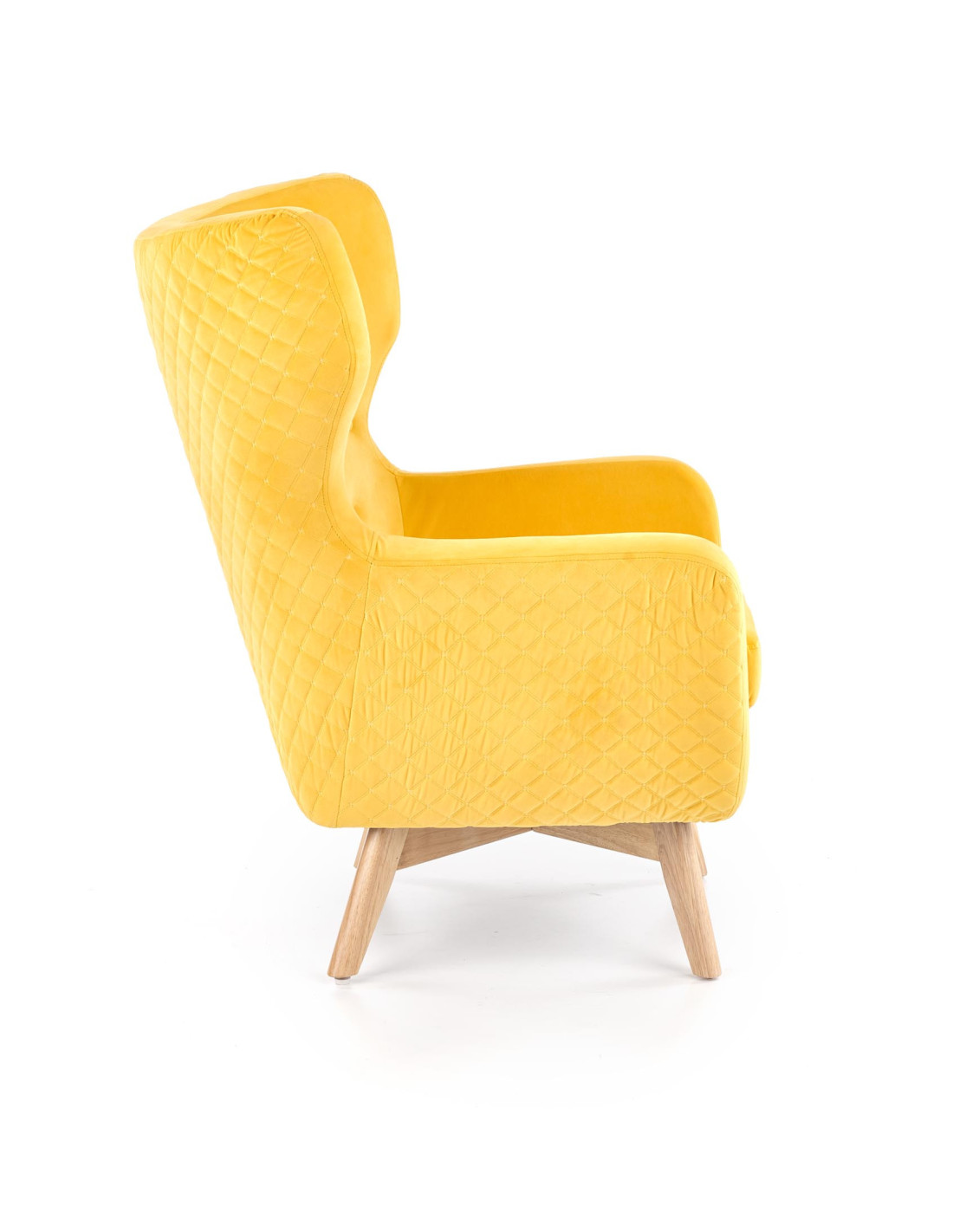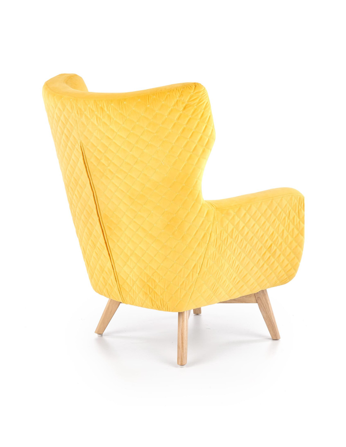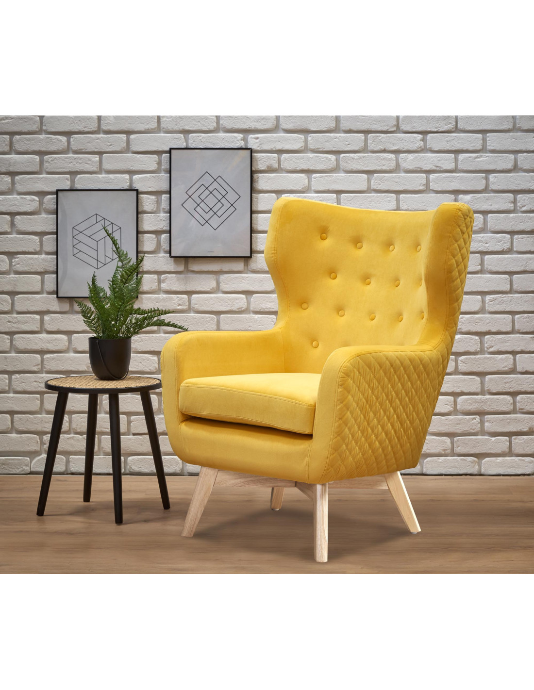 MARVEL Fotel Wypoczynkowy USZAK Pikowany Żółty Velvet - Komfortowy Relaks