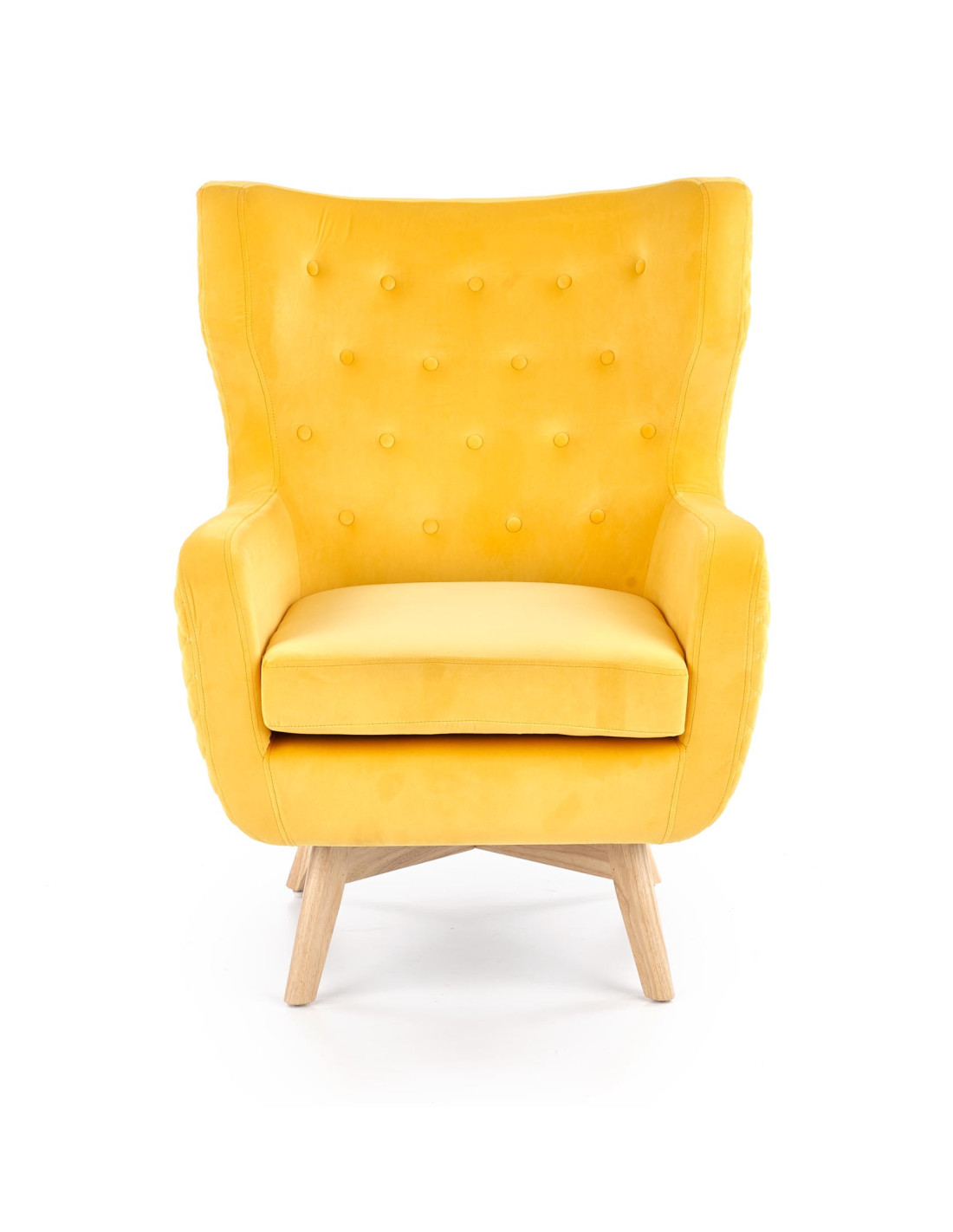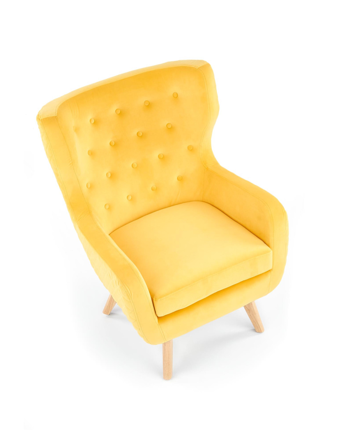 - ☑️ Kolor: żółty (tapicerka), naturalny (nogi)