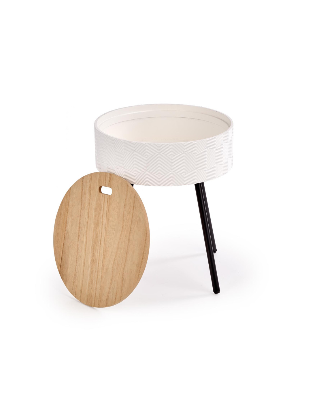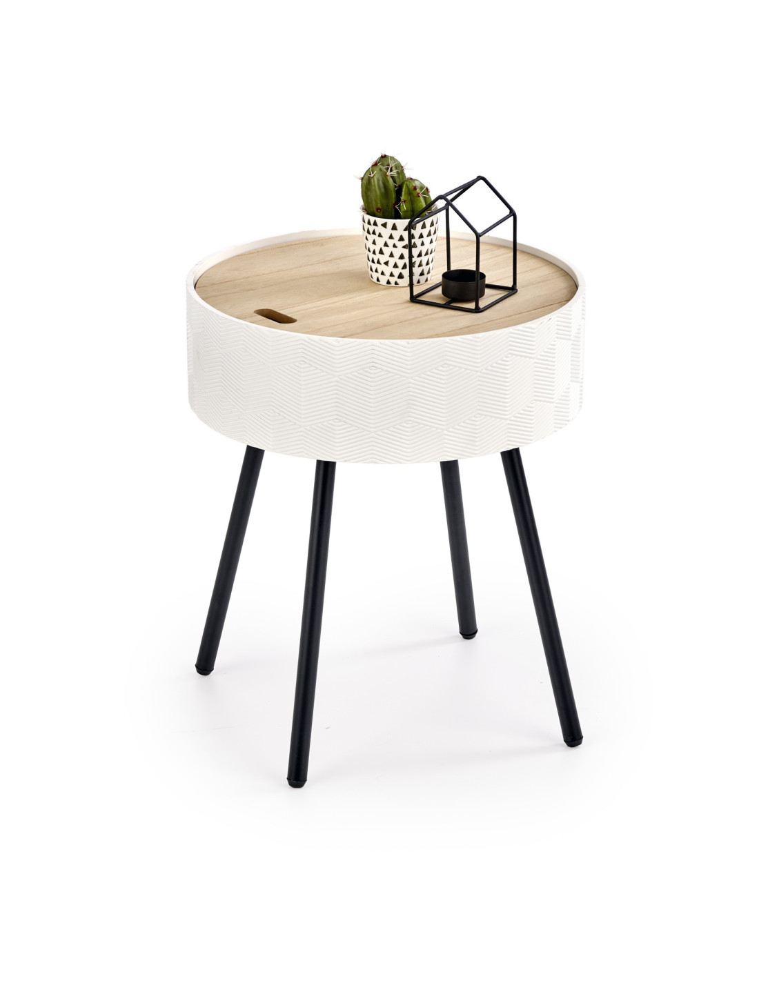 AURA Okrągła Ława fi38/45 cm z Pojemnikiem | Biały/Naturalny/Czarny