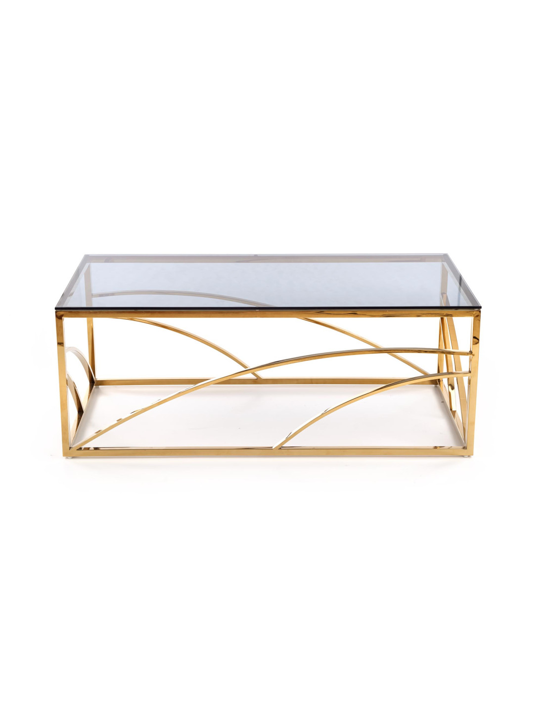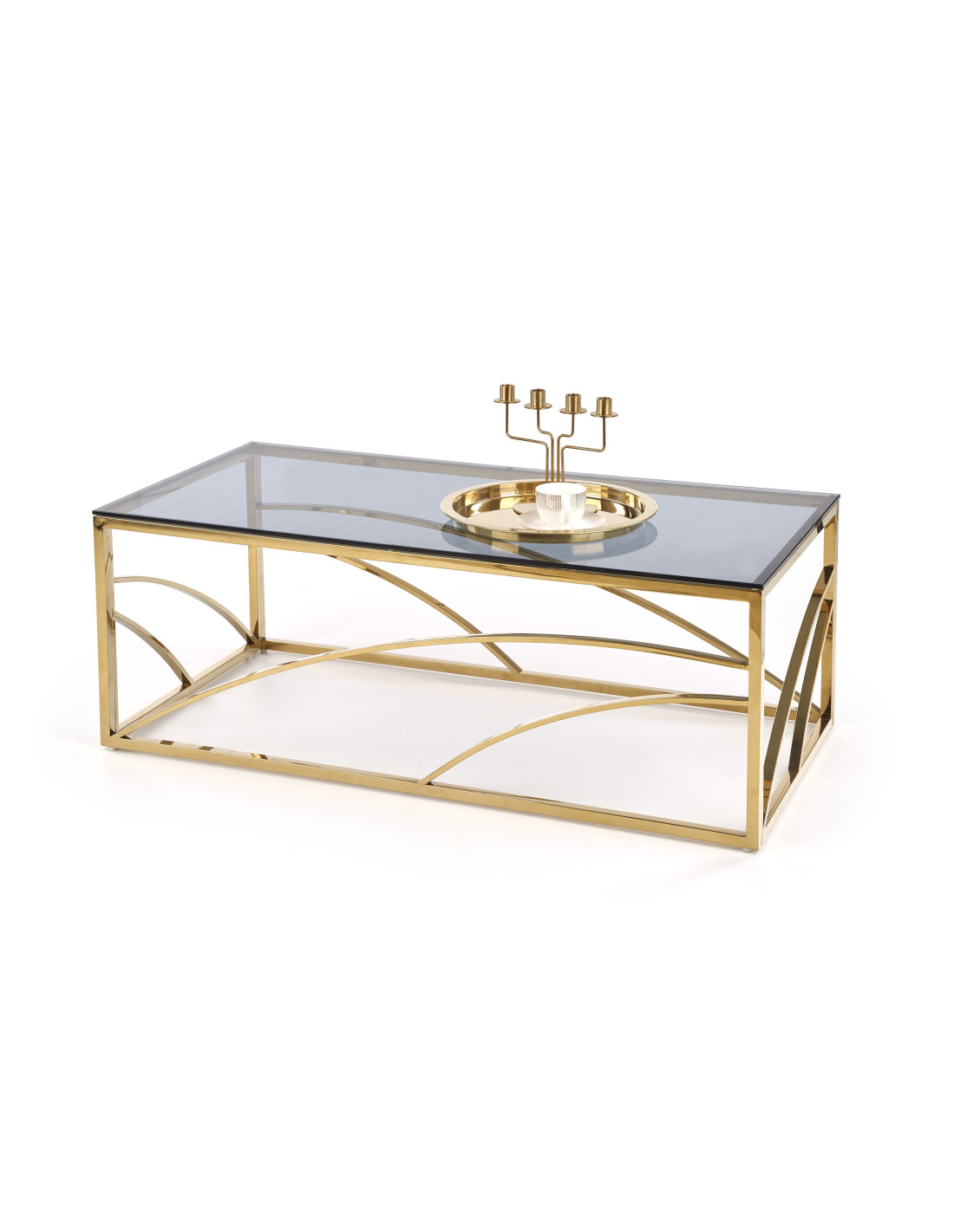 UNIVERSE Ława Glamour 120/60/45 cm Szkło Dymione / Unikalny Złoty Stelaż