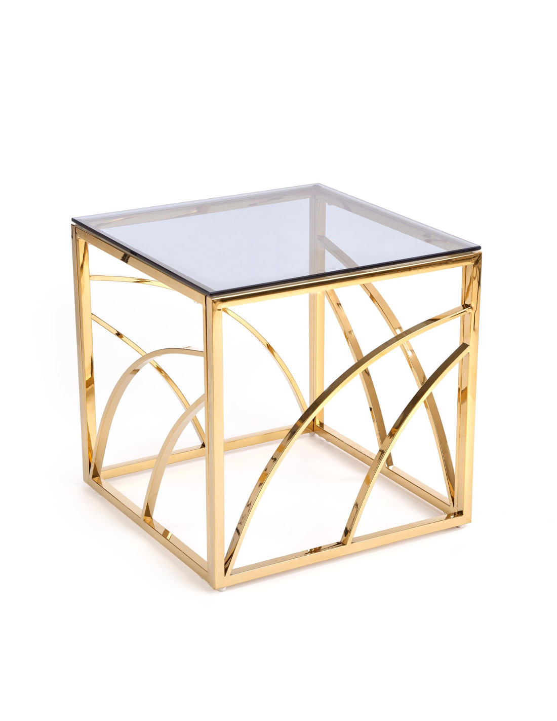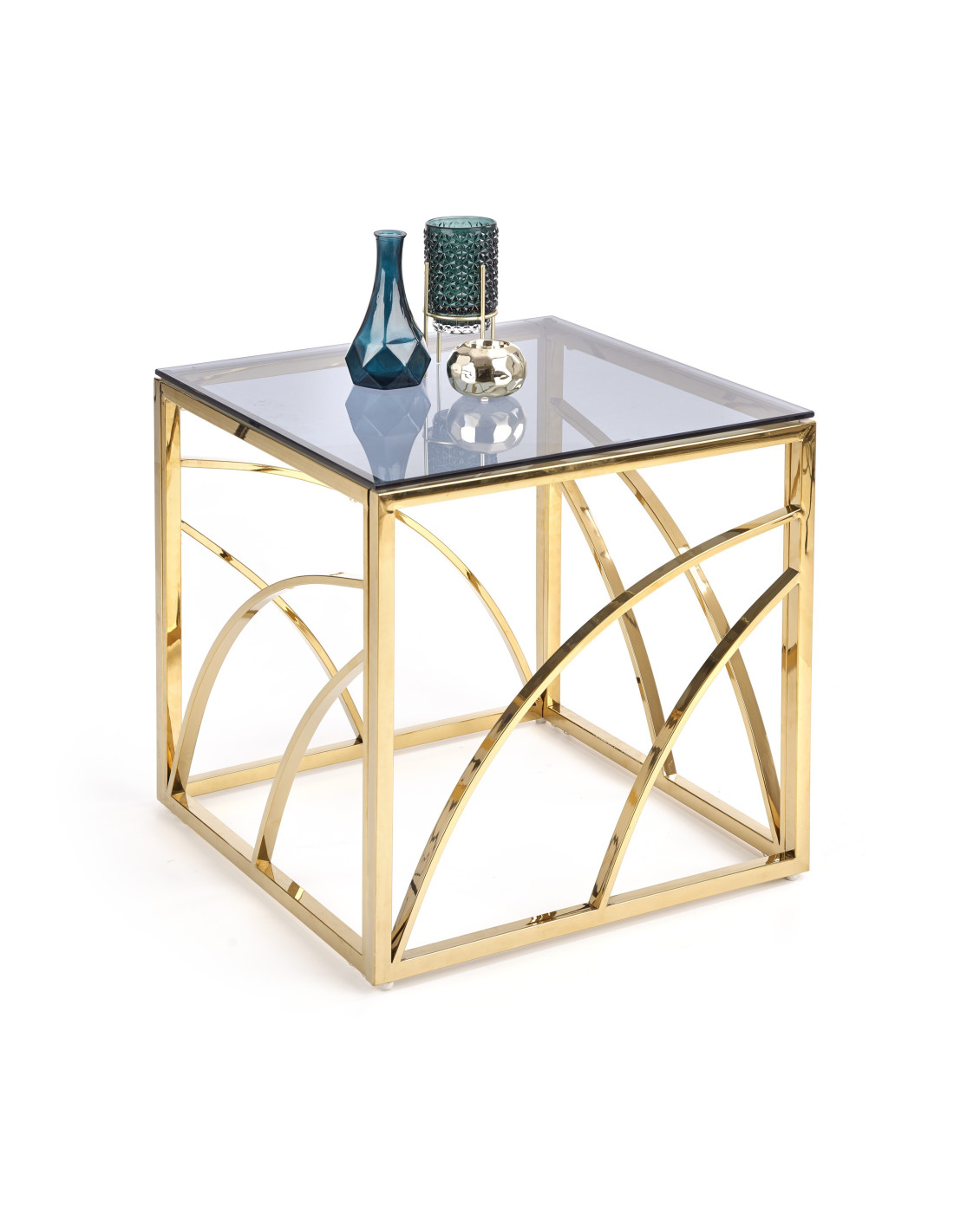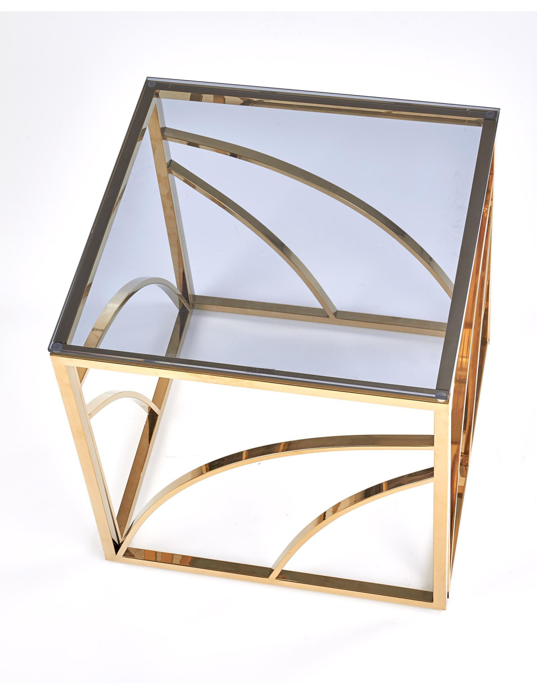 UNIVERSE KWADRAT Ława Glamour 55/55/55 cm Szkło Dymione / Złoty Stelaż