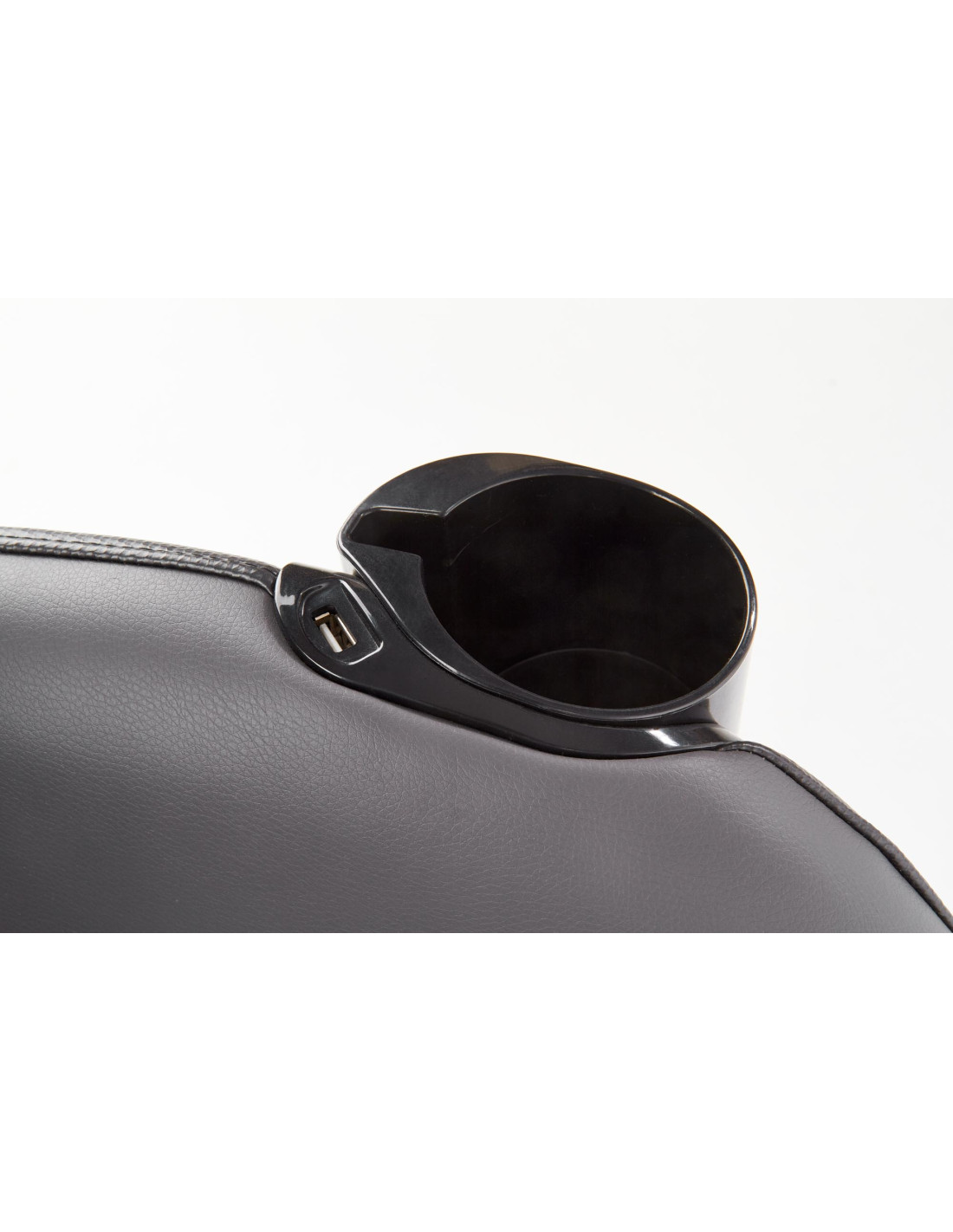 Fotel DOPIO oferuje funkcję masażu, gniazdo USB do ładowania oraz uchwyt na napoje.
