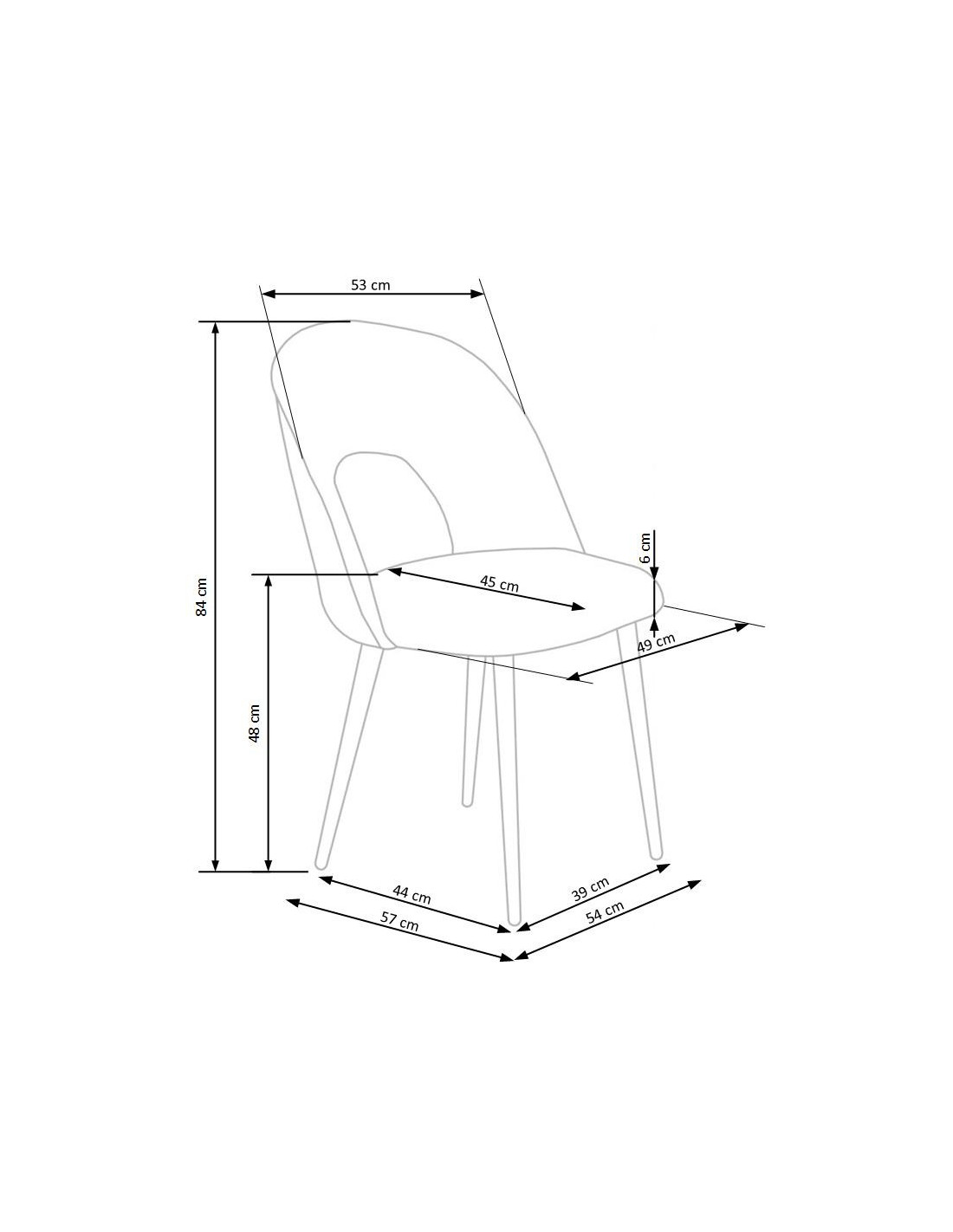 Wymiary i Specyfikacja - Krzesło Popielate K384
