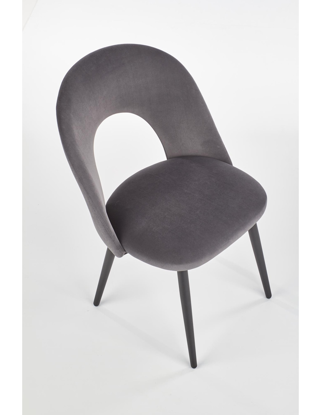 K384 Krzesło Popielate VELVET / Czarne Nogi - Nietuzinkowy Kształt Oparcia