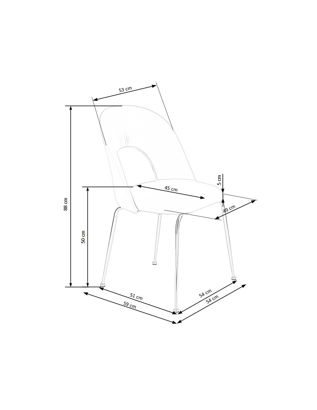 Krzesło wykonane jest z tkaniny velvet oraz stali chromowanej, co zapewnia mu estetyczny wygląd i komfort użytkowania.