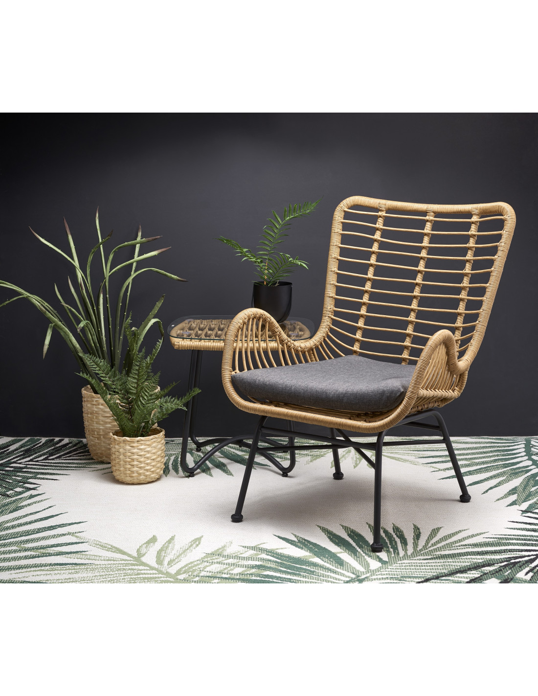 - ☑️ Materiał: rattan syntetyczny, stal malowana proszkowo, tkanina