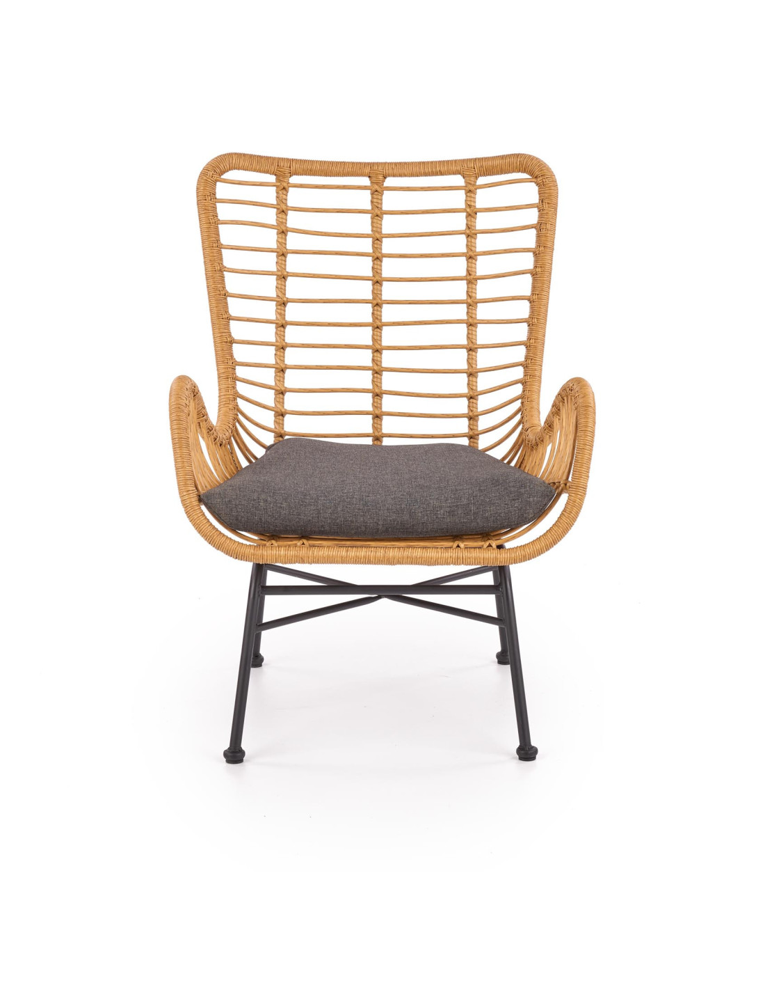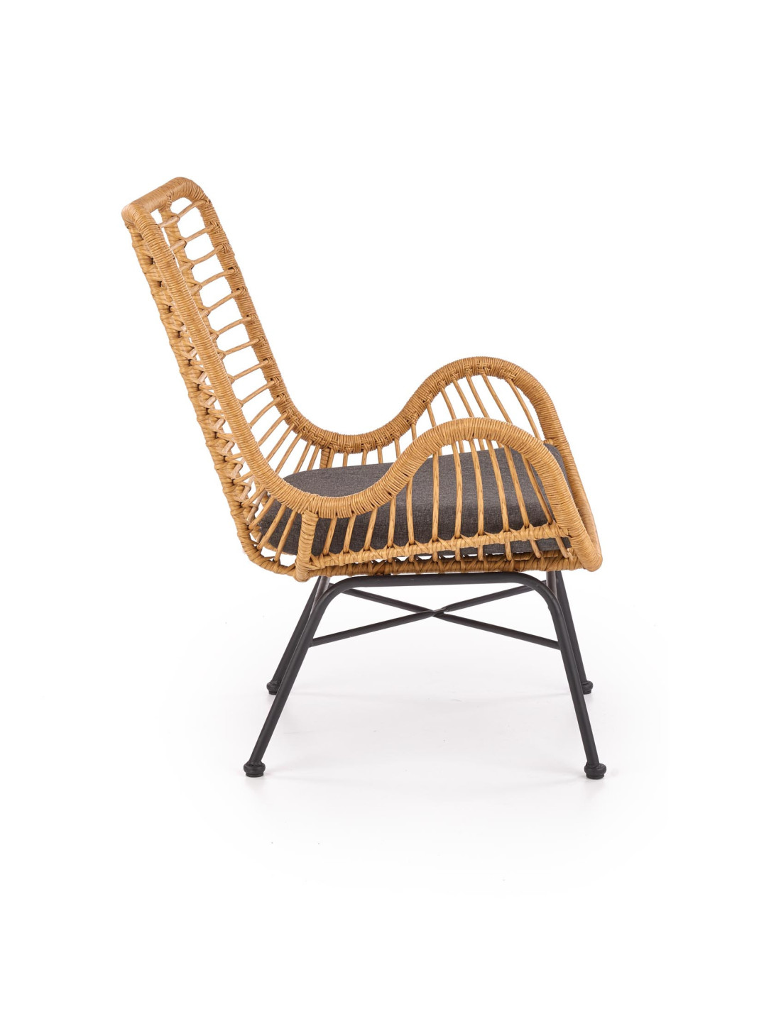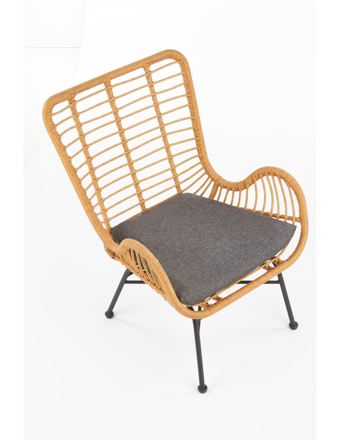 Fotel IKARO wykonany jest z syntetycznego rattanu, tkaniny oraz stali malowanej proszkowo.