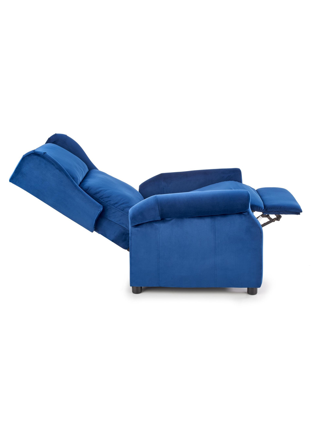 Aby rozłożyć fotel, wystarczy oprzeć się plecami o oparcie, co automatycznie uniesie zintegrowany podnóżek. Powrót do pozycji wyjściowej jest równie prosty – wystarczy nacisnąć nogami na podnóżek. To funkcjonalne rozwiązanie sprawdzi się zarówno w salonie, jak i w przestrzeniach odpoczynku.