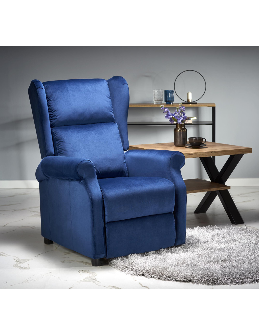 AGUSTIN 2 Fotel Rozkładany USZAK Granatowy Velvet – Głębia Koloru i Spokoju