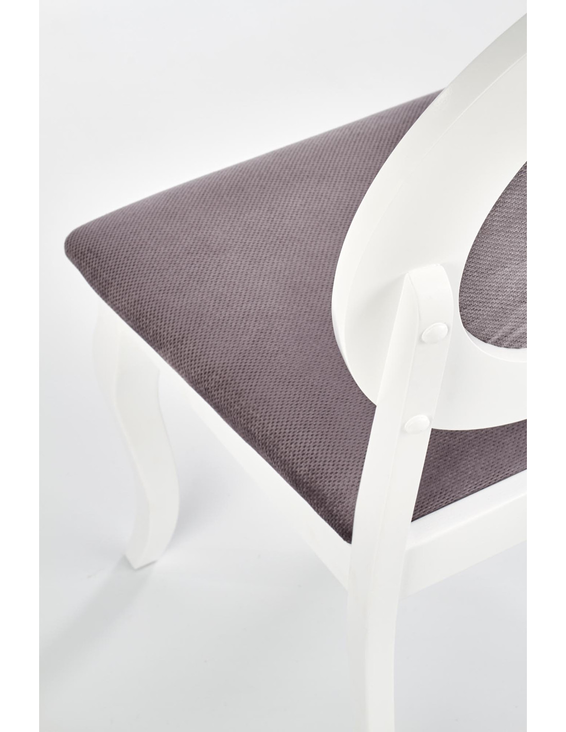 Konstrukcja krzesła wykonana jest z litego drewna kauczukowego, co nadaje mu solidności i ponadczasowego charakteru. Popielata tapicerka w połączeniu z białą ramą sprawia, że krzesło BAROCK doskonale wpisuje się w różnorodne aranżacje, od klasycznych po nowoczesne, dodając im niepowtarzalnego uroku.