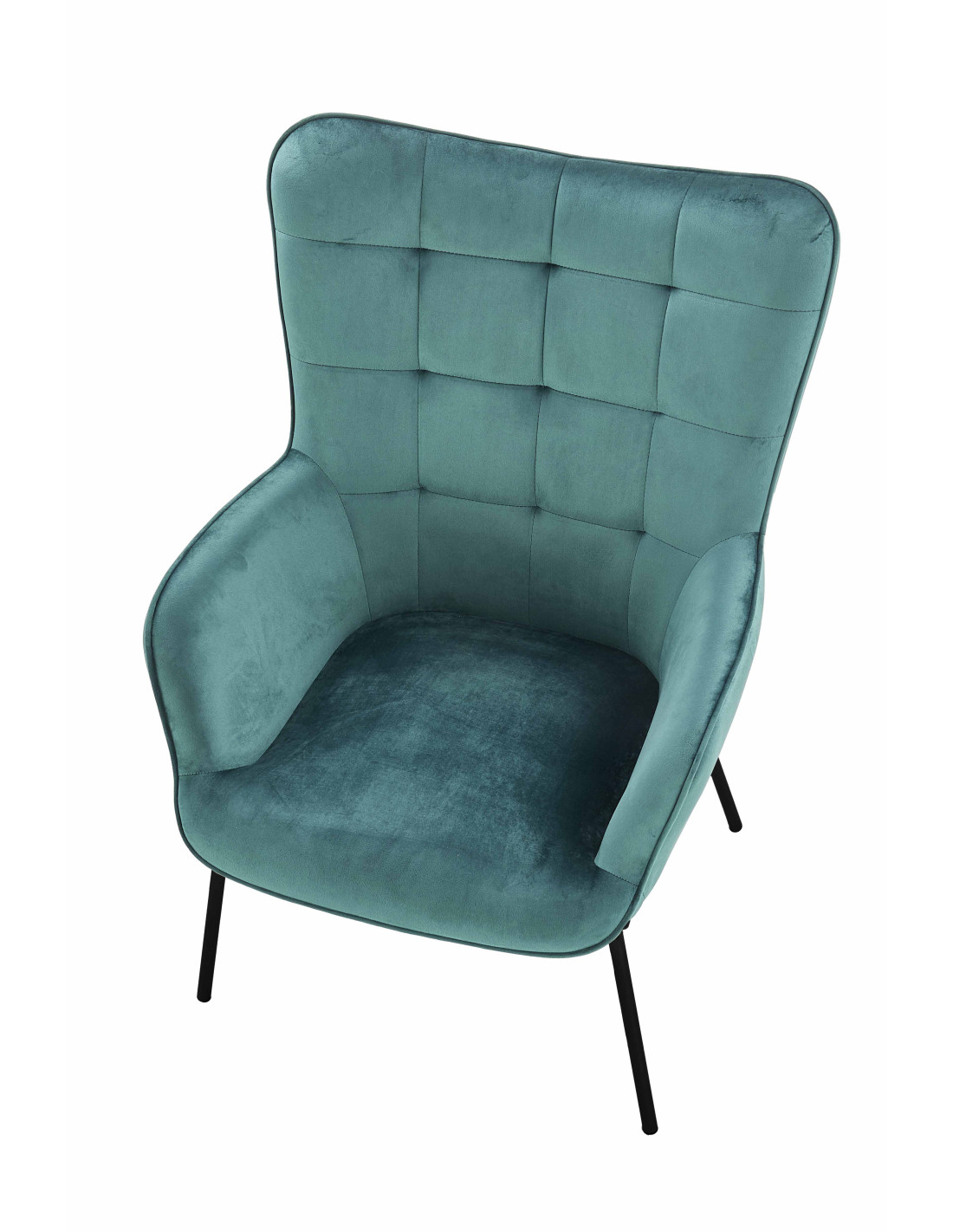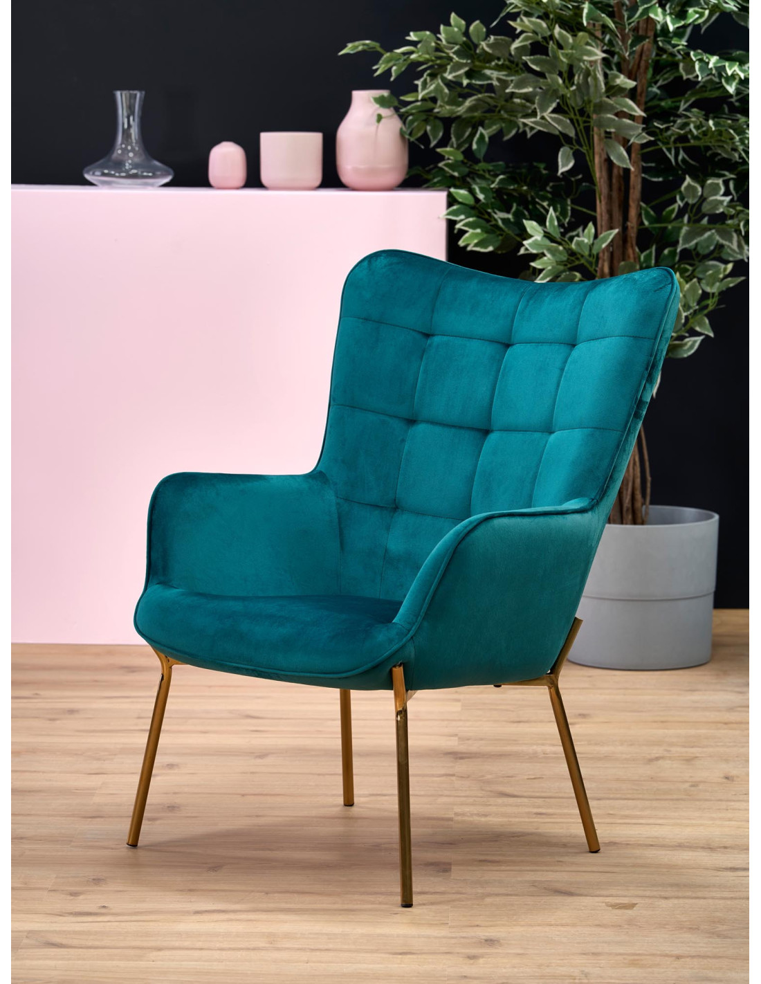 Wzbogać swoje wnętrze za pomocą fotel w ciemnozielonym kolorze CASTEL, który zachwyca swoim nowoczesnym designem oraz komfortem. Jego wygodne, zaokrąglone podłokietniki oraz tapicerka z pikowaniem na oparciu sprawiają, że każdy moment spędzony w tym fotelu to prawdziwa przyjemność. Wysokie oparcie delikatnie przechodzi w podłokietniki, co nadaje mu eleganckiego wyglądu, a jednocześnie zapewnia wsparcie dla pleców.