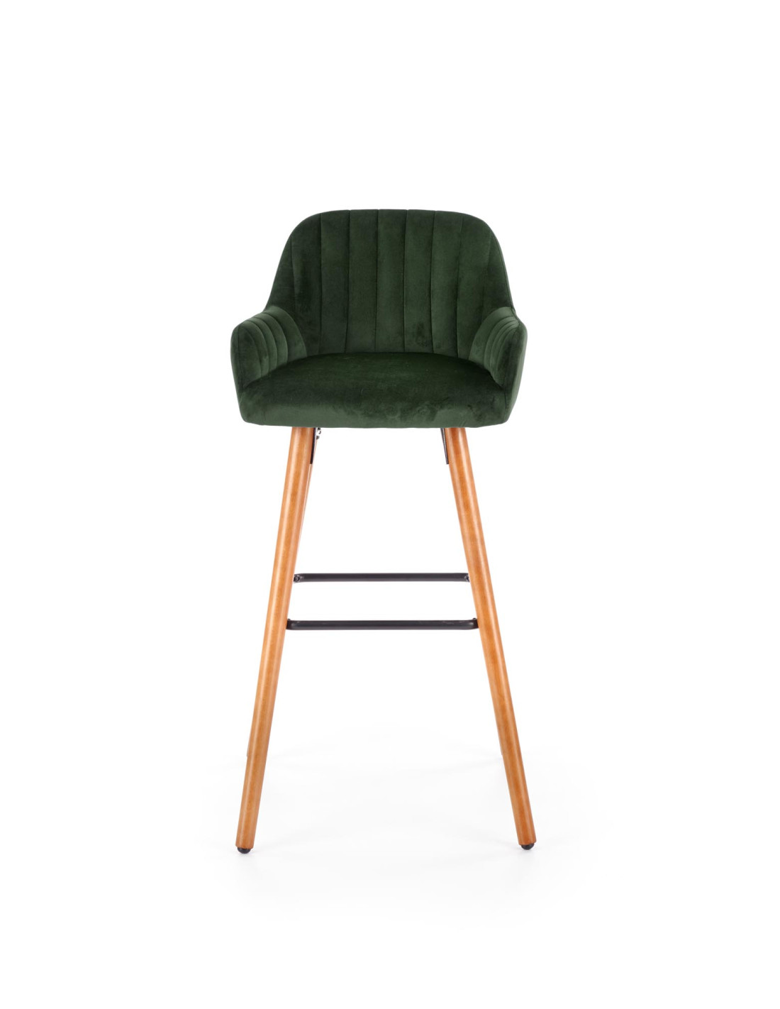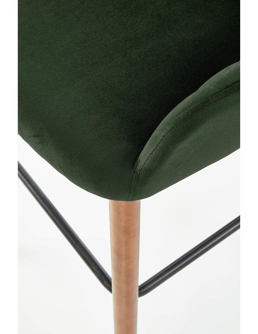Zachwyć się hokerem H93, który łączy nowoczesny design z eleganckim akcentem retro. Jego ciemnozielone, welwetowe siedzisko o zaokrąglonym kształcie oraz pionowe przeszycia na oparciu sprawiają, że każdy moment spędzony przy stole czy wyspie kuchennej to czysta przyjemność. Nogi wykonane z drewna w kolorze orzecha oraz metalowy podnóżek w kolorze czarnym dodają mu klasy i stabilności.