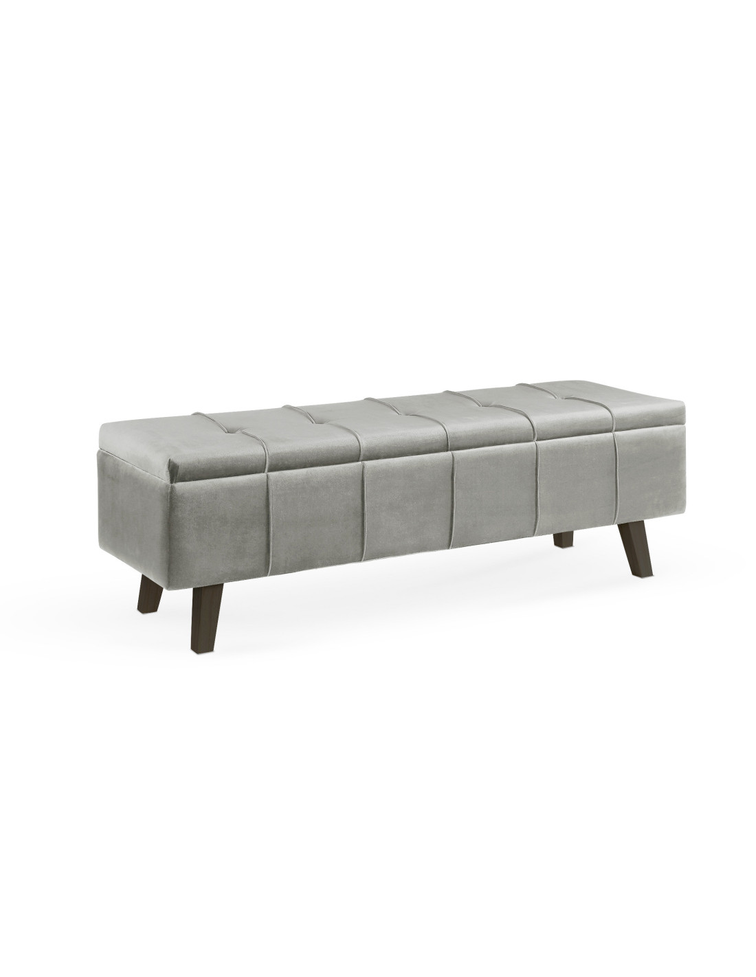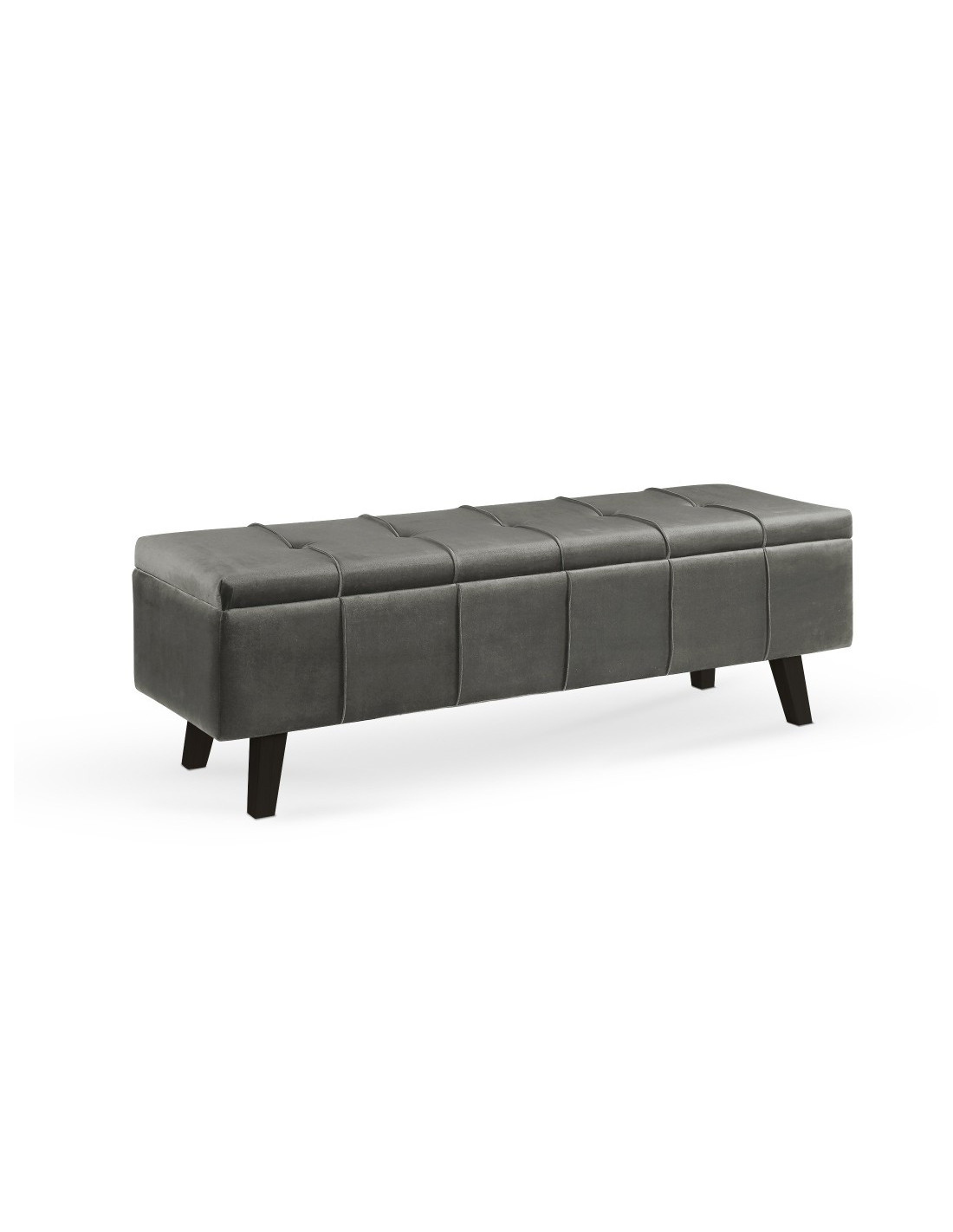 wymiary: 130/40/44 cm,ławka z funkcją pojemnika,materiał: tkanina / drewno lite,kolor: tapicerka - ciemny popielaty,nogi - czarny