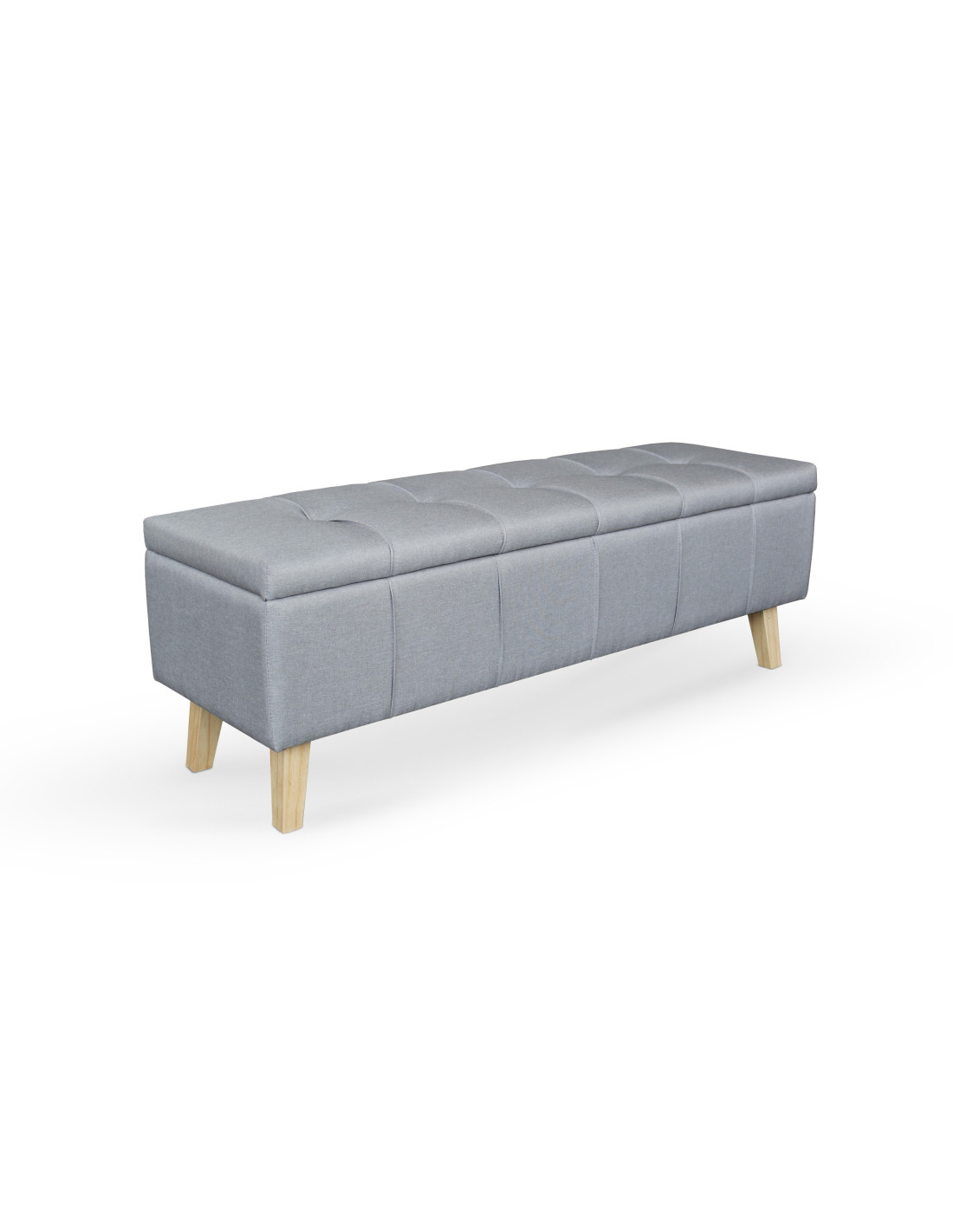 wymiary: 130/40/44 cm,ławka z funkcją pojemnika,materiał: tkanina / drewno lite,kolor: tapicerka - popielaty,nogi - naturalny