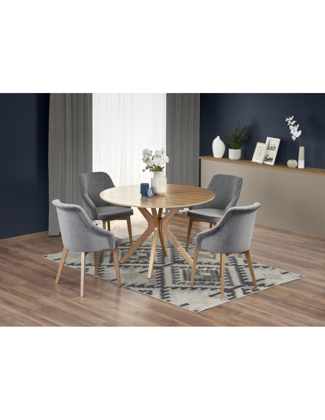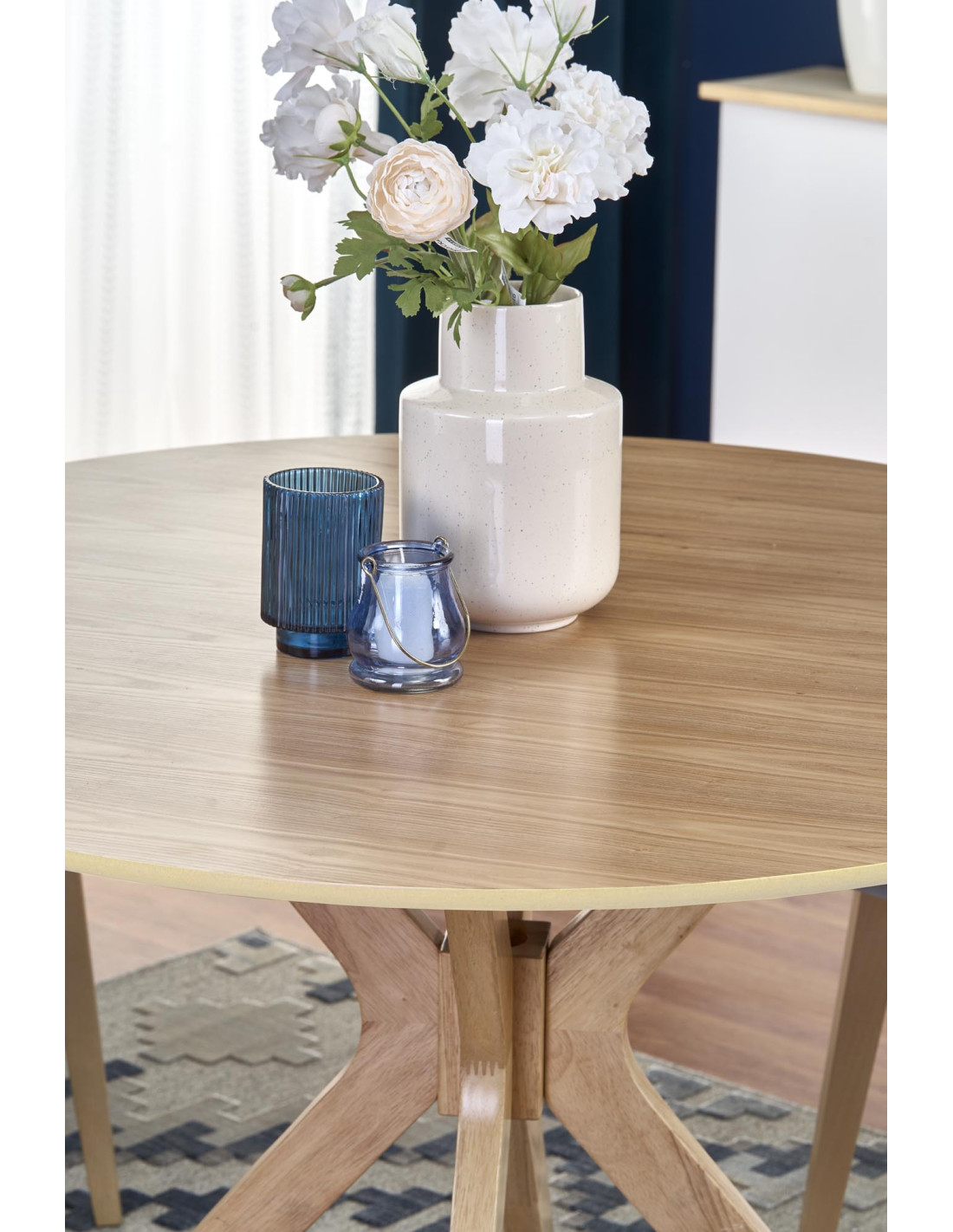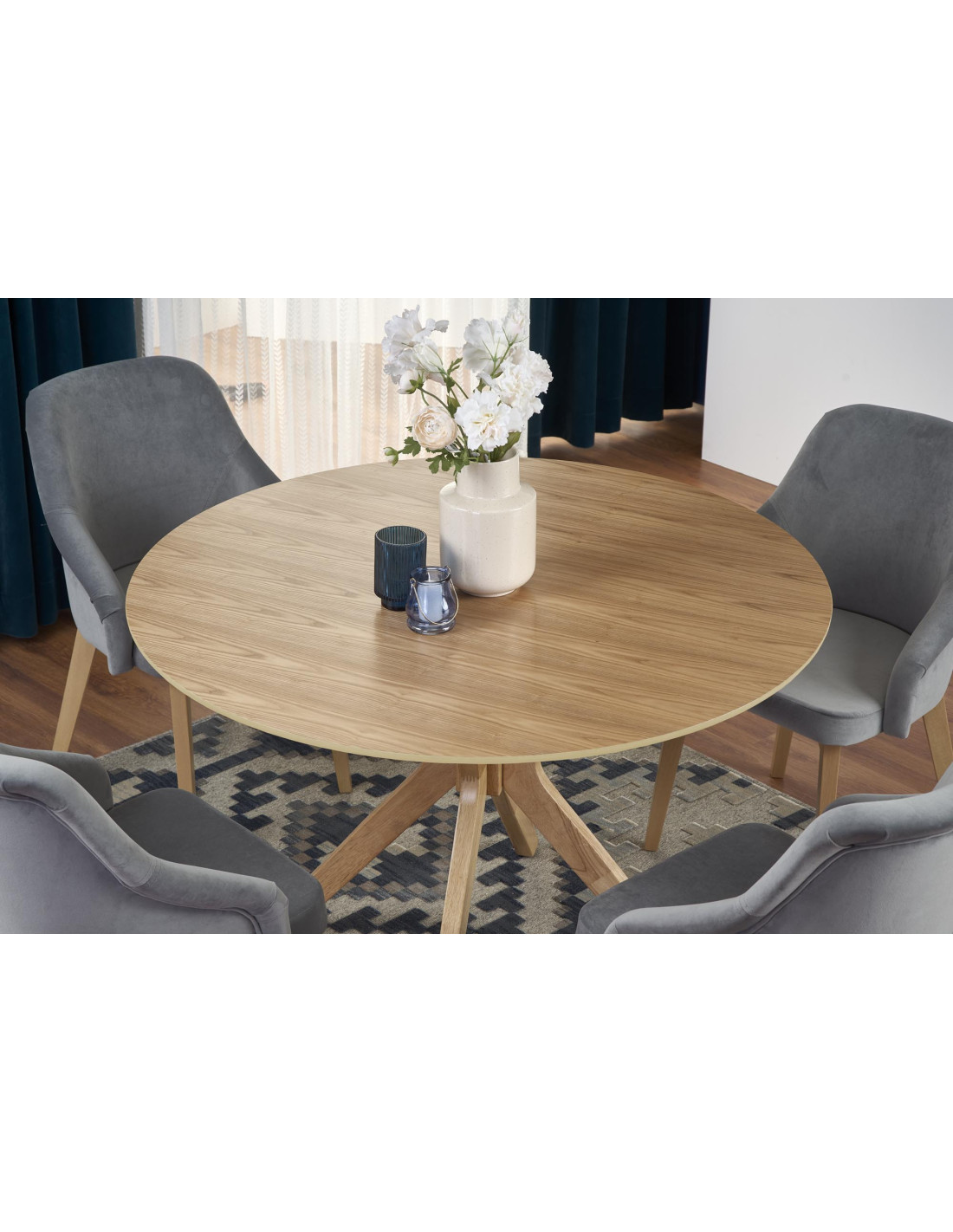 Okrągły stół NICOLAS doskonale wpisuje się w skandynawski styl, który stawia na prostotę i funkcjonalność. Jego elegancka forma i naturalne materiały sprawiają, że stół nie tylko przyciąga wzrok, ale również tworzy ciepłą atmosferę w każdym wnętrzu.