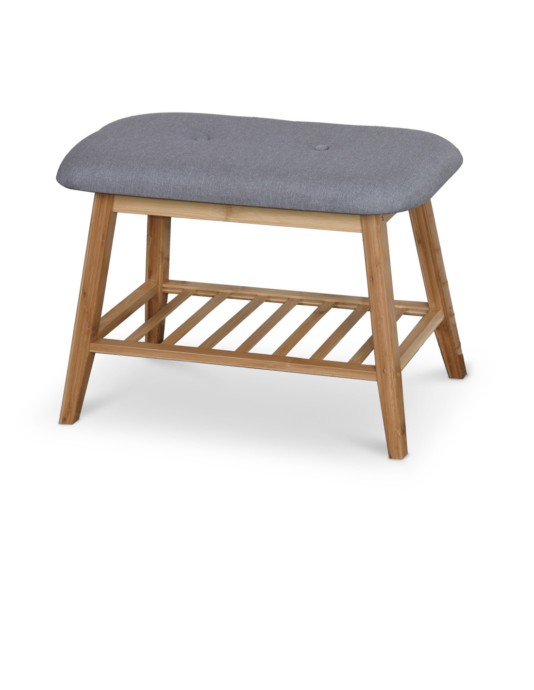 Pod siedziskiem znajduje się praktyczna półka z drewnianych listewek, która pomieści Twoje ulubione obuwie, utrzymując porządek w przedpokoju lub garderobie. Wykonany z litego bambusa, stojak jest zarówno lekki, jak i wytrzymały, a jego naturalne wykończenie dodaje uroku każdemu wnętrzu.