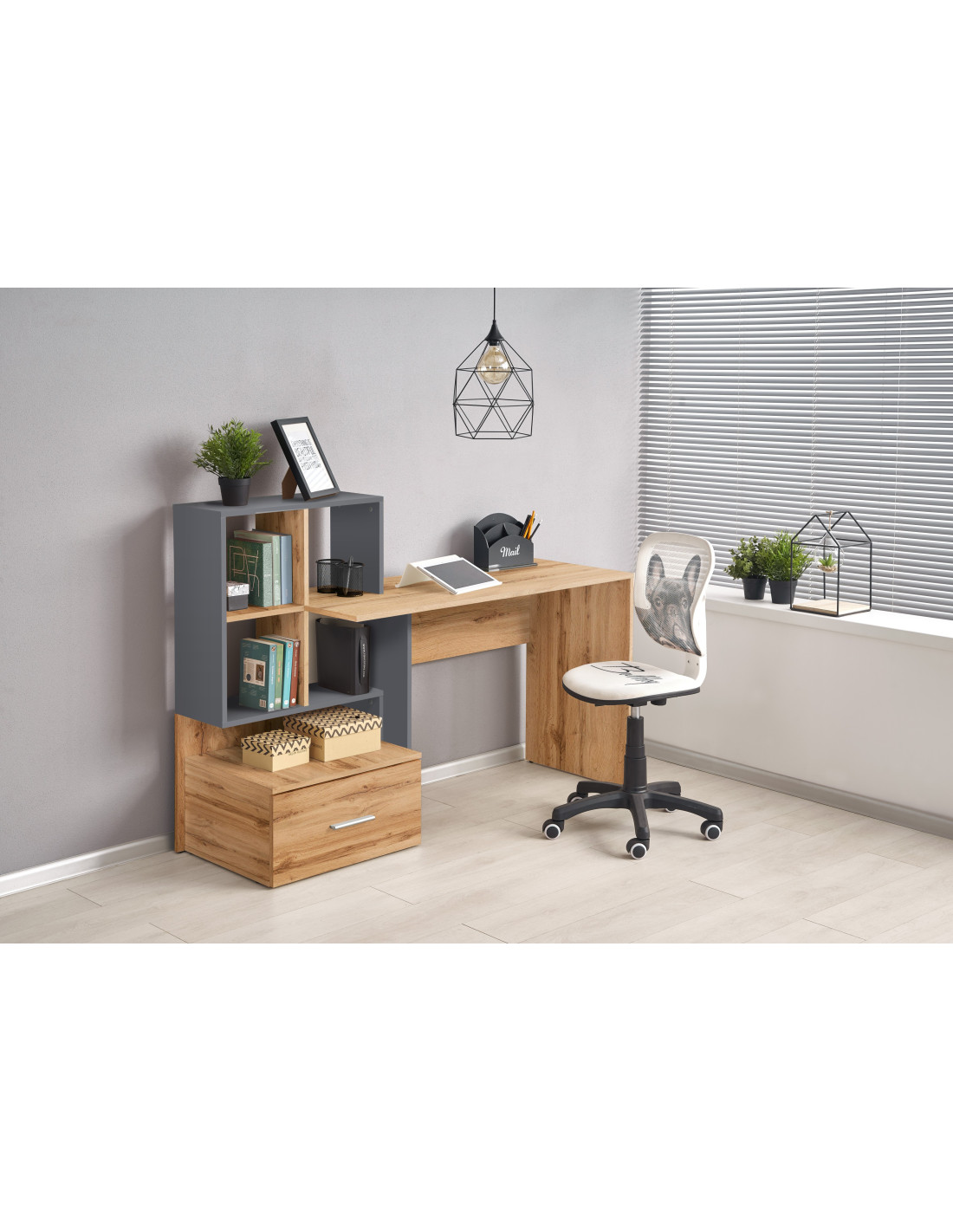GROSSO Biurko z Szufladą i Półkami Dąb Wotan/Antracyt – Praktyczność i Styl