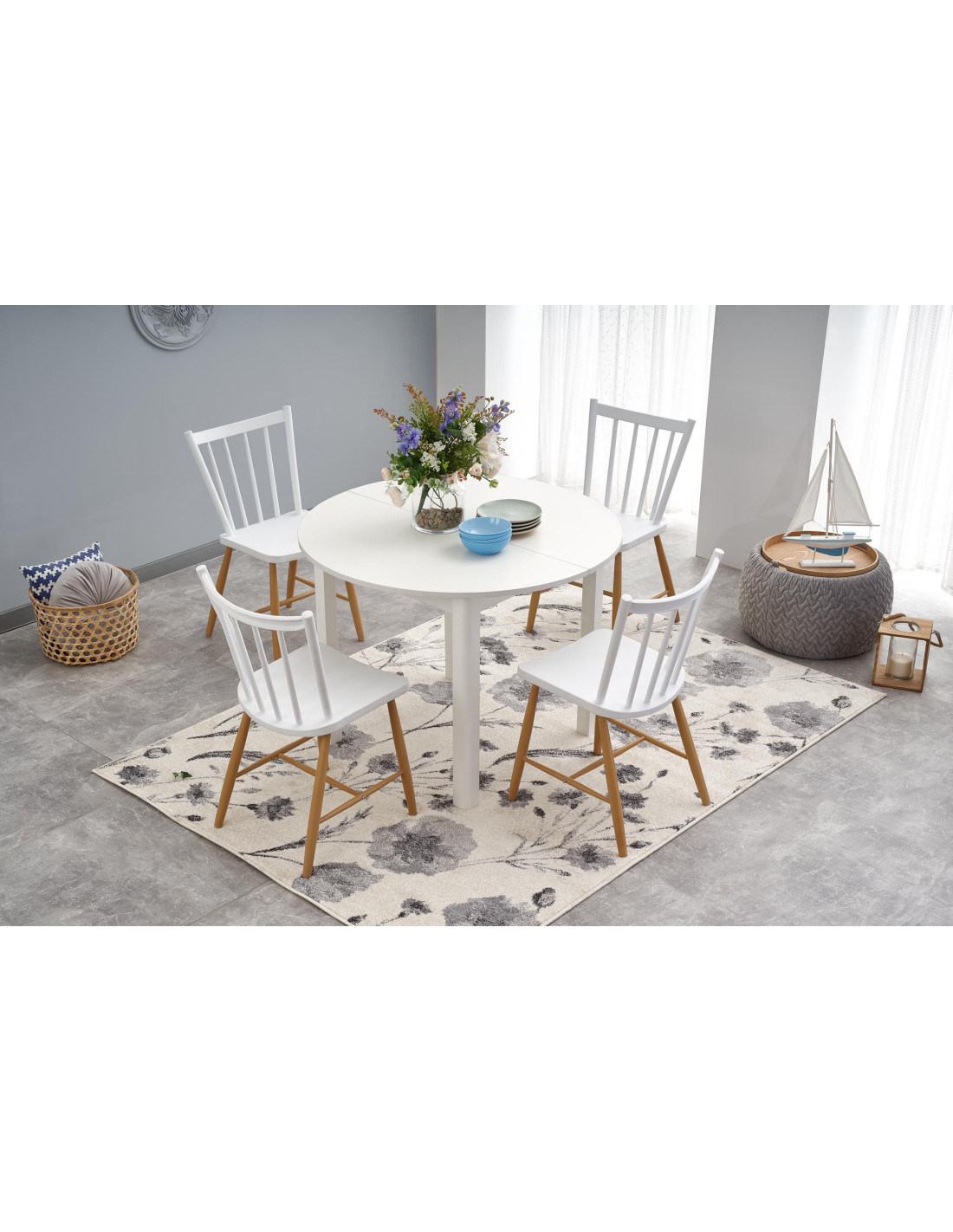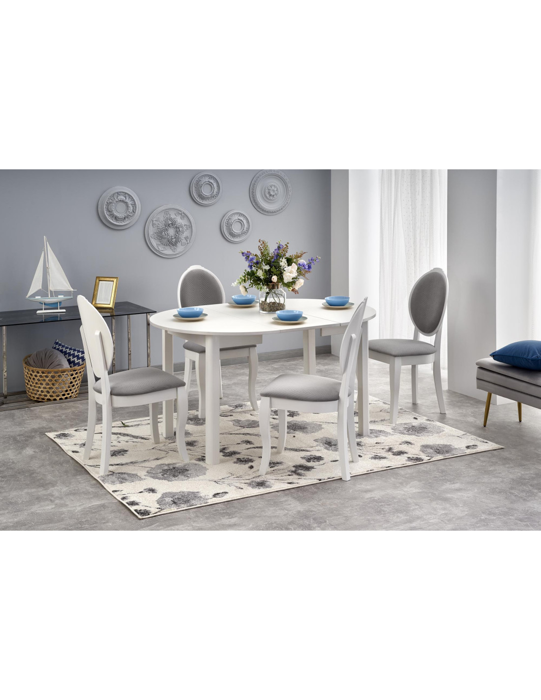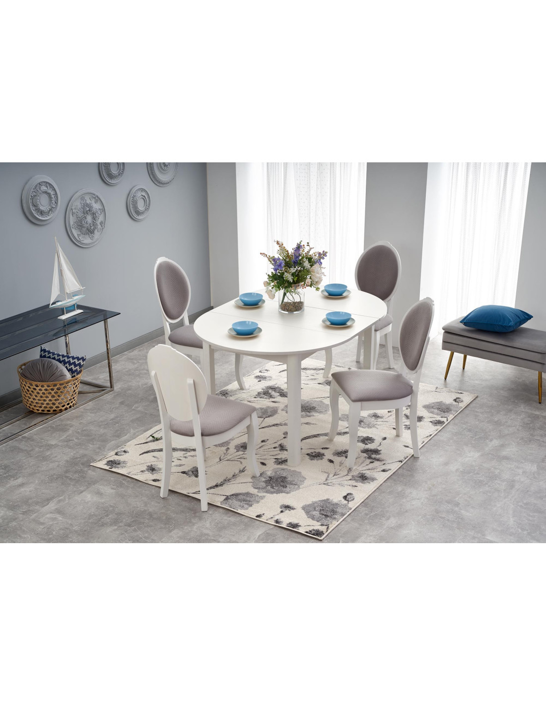 Stół RINGO dostępny jest w eleganckiej bieli, co tworzy nowoczesną i minimalistyczną kompozycję.