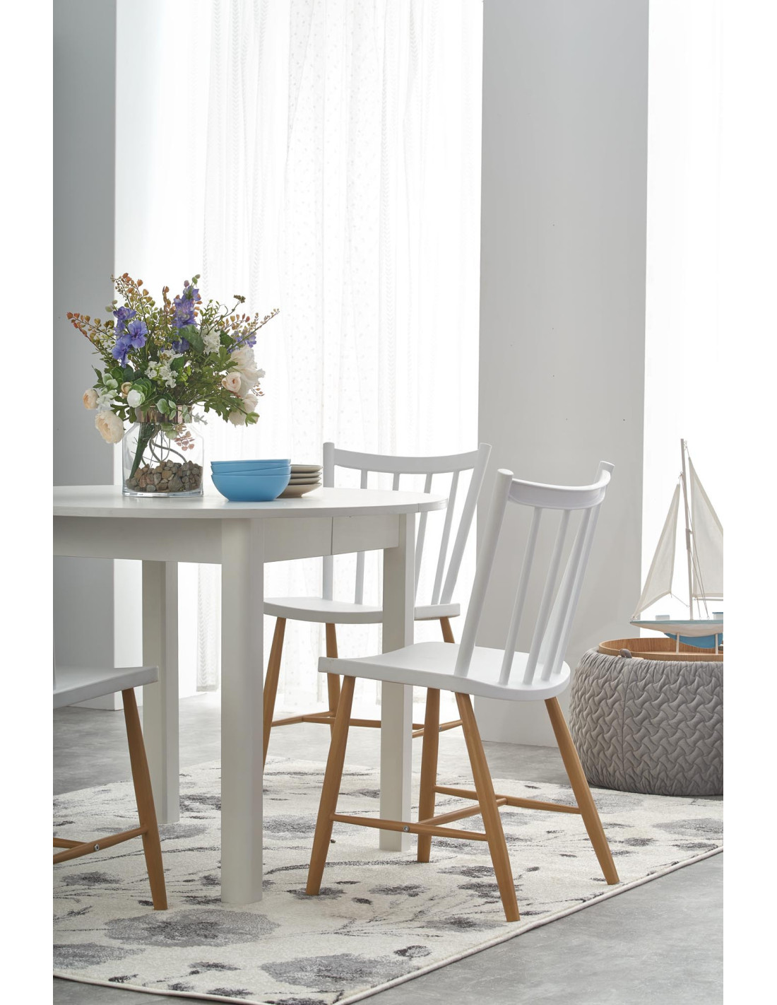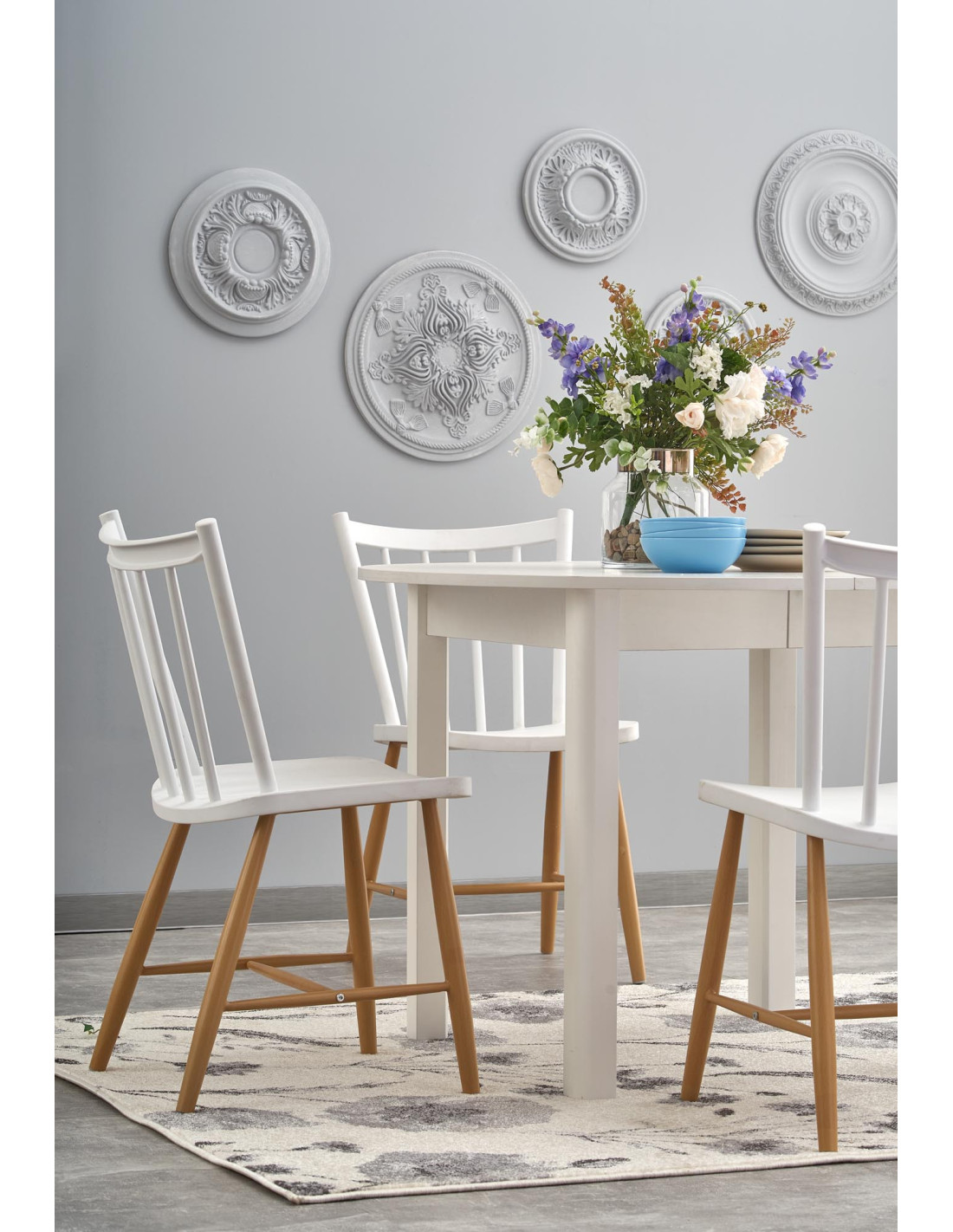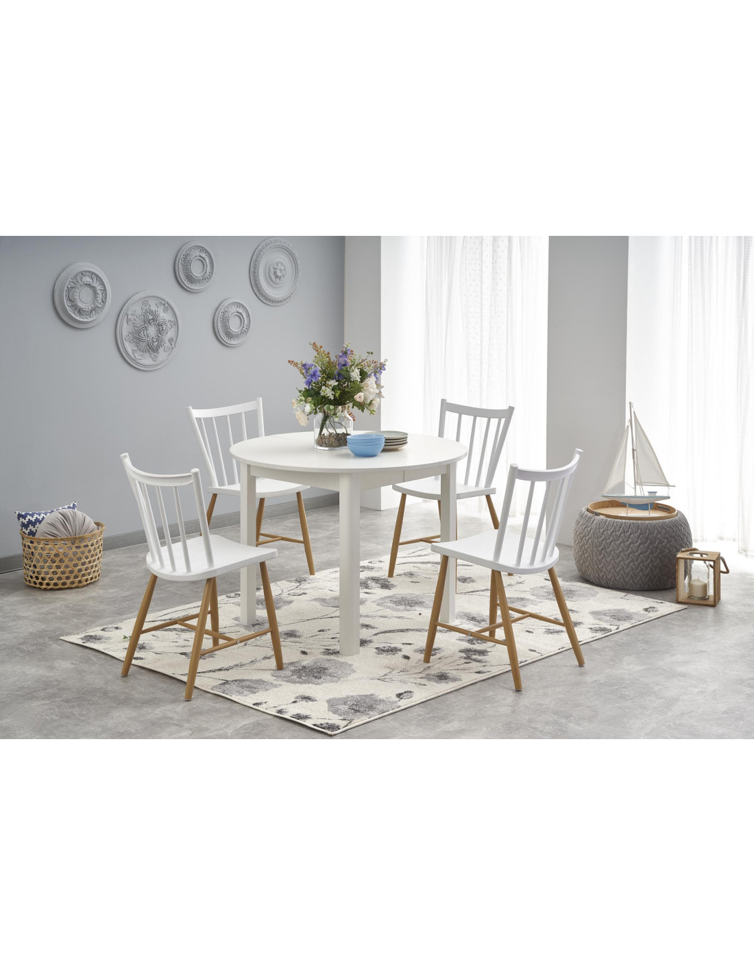 Stół RINGO dostępny jest w eleganckiej bieli, co tworzy nowoczesną i minimalistyczną kompozycję.