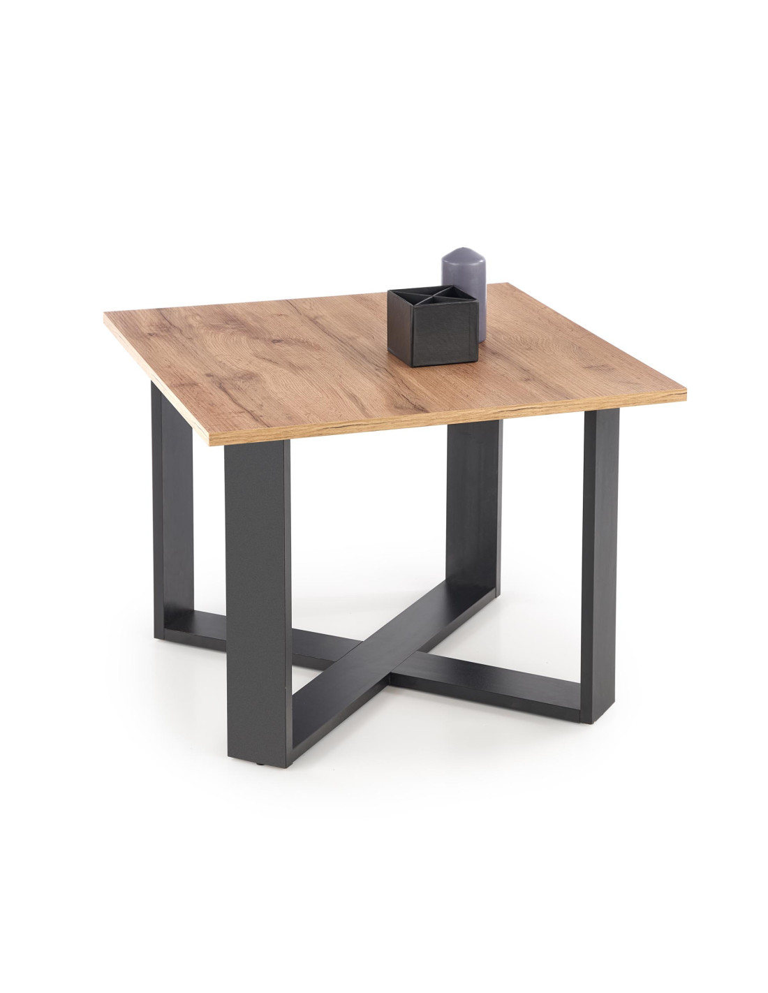 Zaprojektowany z myślą o Tobie! Ława CROSS to połączenie nowoczesnego designu z industrialnym stylem, które zachwyci każdego miłośnika eleganckich wnętrz. Jej kwadratowy blat, wykonany z płyty meblowej okleinowanej w kolorze dąb wotan, tworzy harmonijne zestawienie z czarną, metalową ramą o geometrycznym kształcie. Ta ława nie tylko doskonale wygląda, ale również spełnia wszystkie funkcje praktyczne, które są niezbędne w każdym nowoczesnym pomieszczeniu.