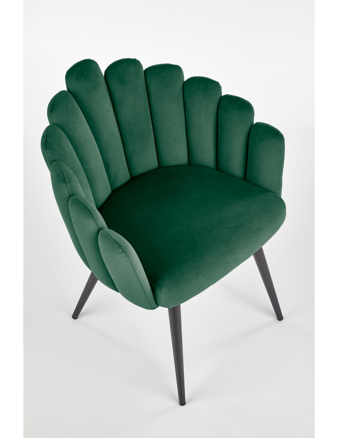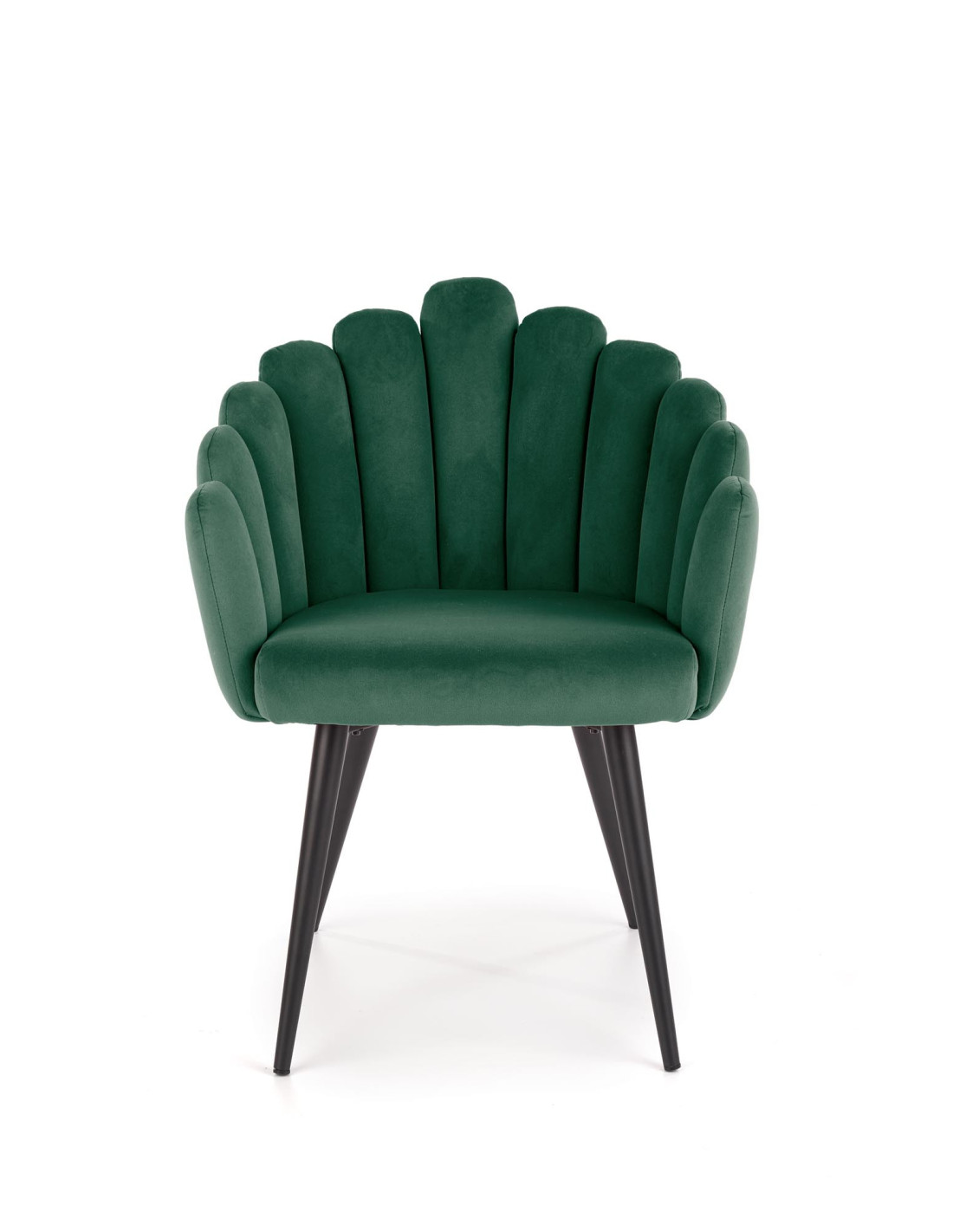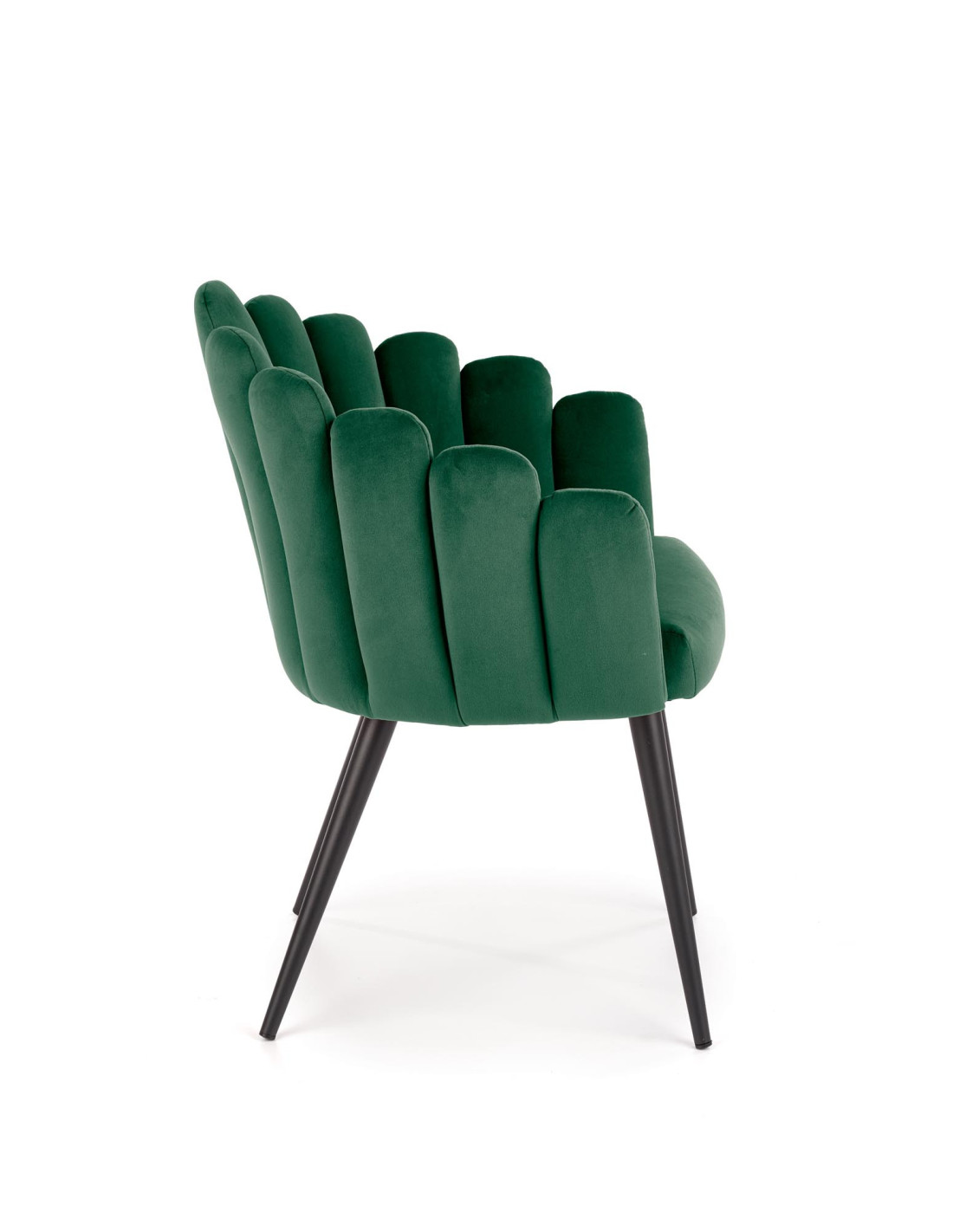 Ciesz się wyjątkowym designem krzesła K410, które łączy w sobie nowoczesność i stylową elegancję. To krzesło tapicerowane miękkim welurem w ciemnozielonym odcieniu zachwyca swoim kształtem, przypominającym muszlę. Jego ergonomiczne oparcie oraz wygodne siedzisko sprawiają, że każda chwila spędzona w nim przynosi prawdziwą przyjemność.