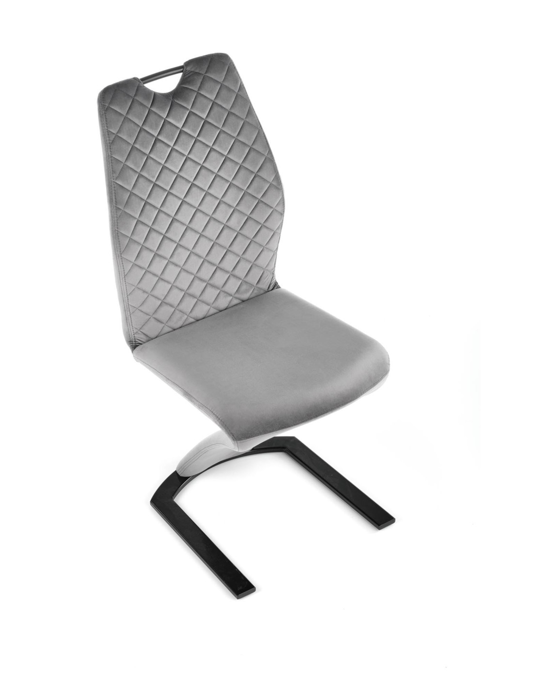 K442 Krzesło Pikowane z Uchwytem na Płozie Popielate Velvet - Wygoda i Styl