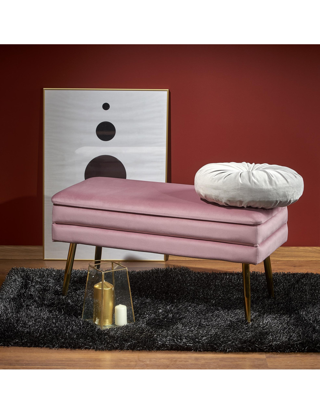 VELVA Ławka Glamour z Pojemnikiem Różowa Złote Nóżki - Akcent Glamour