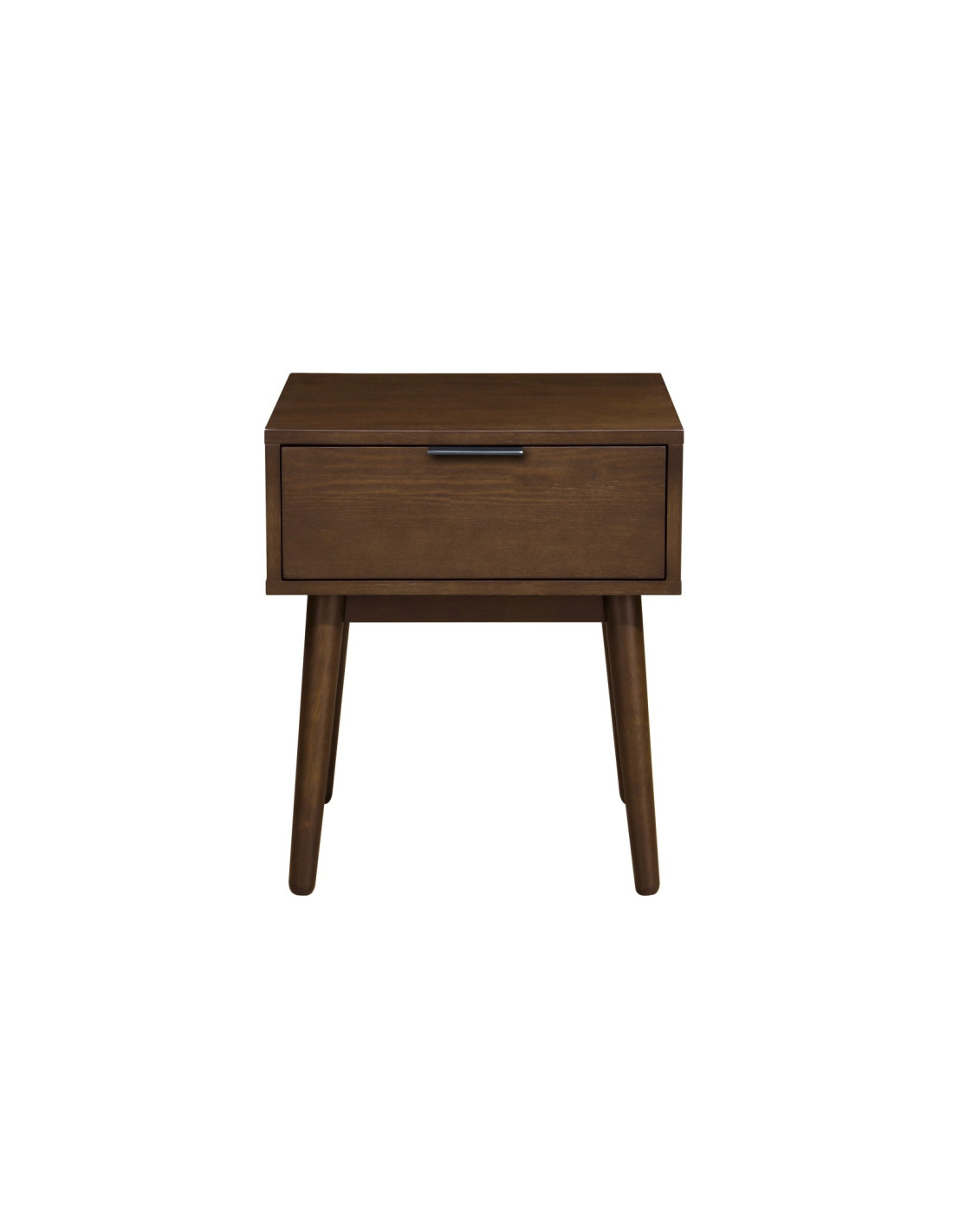 Szafka nocna została zaprojektowana z myślą o funkcjonalności – jedno praktyczne miejsce na drobiazgi, ukryte za prostym, czarnym uchwytem, sprawi, że Twoja sypialnia stanie się bardziej uporządkowana. Dzięki lekkim, rozchylonym nogom, szafka doskonale wpasuje się w różnorodne aranżacje wnętrz.