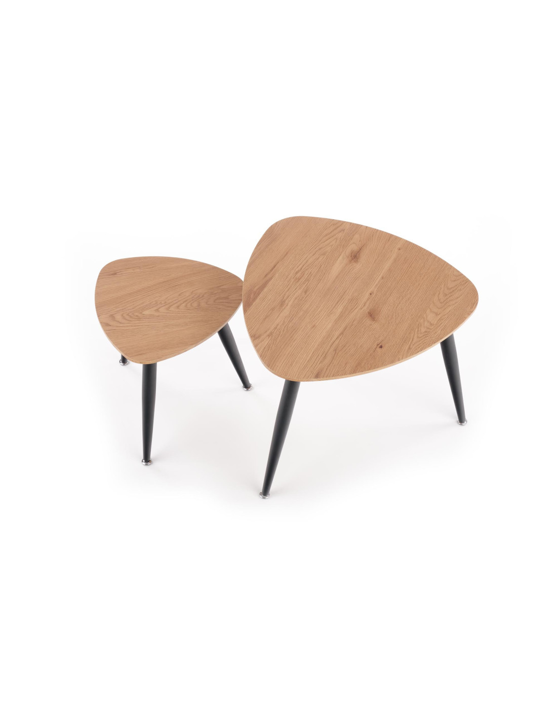- ✅ Trójkątne blaty: Oferują unikalny kształt, który wyróżnia zestaw spośród tradycyjnych stolików, idealny do nowoczesnych wnętrz.