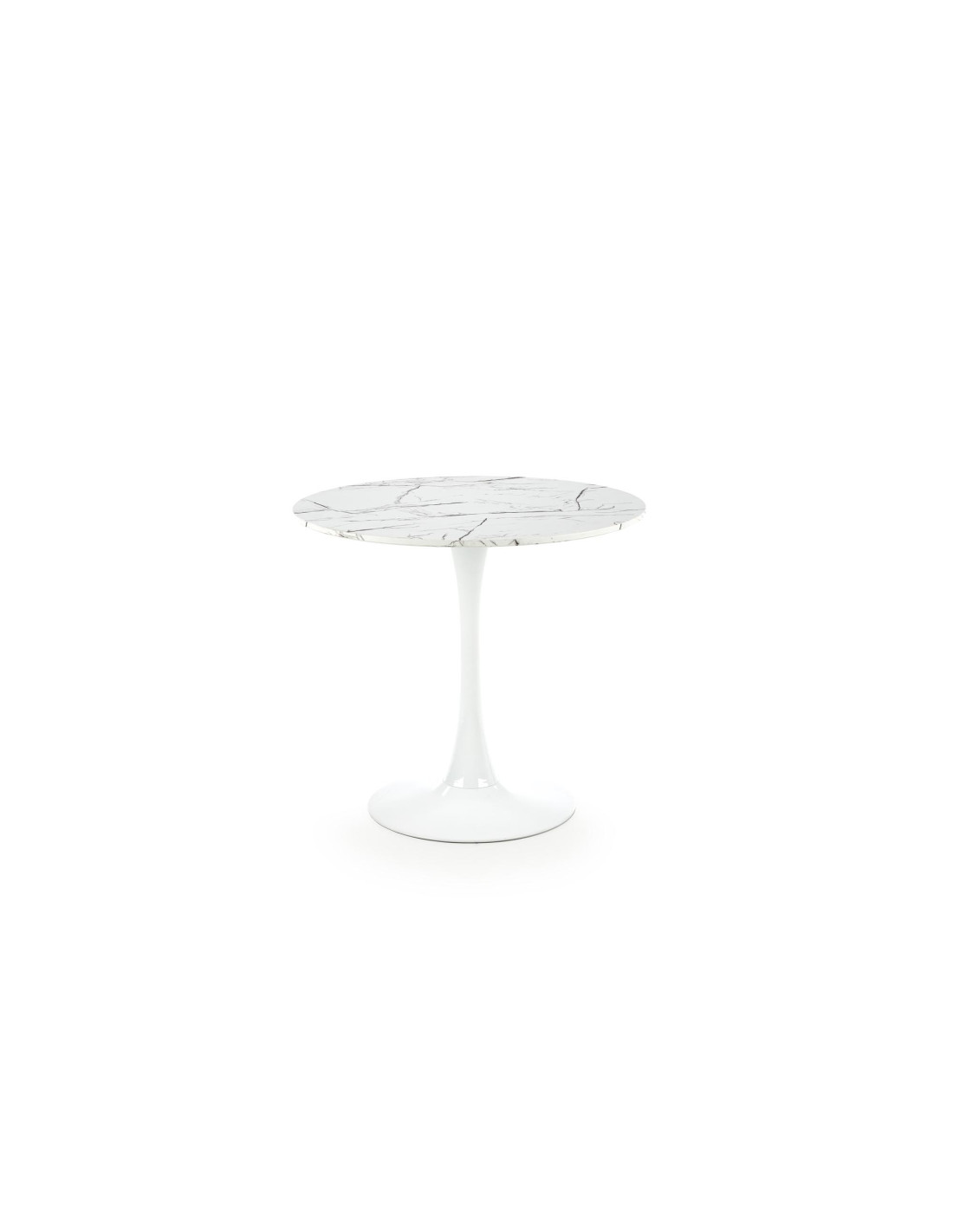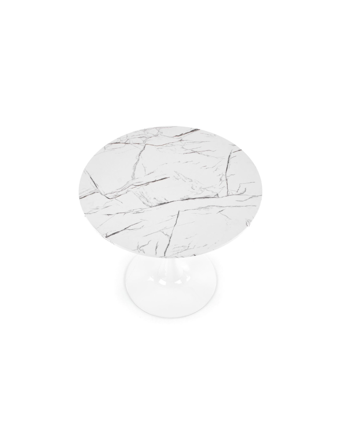 DENVER Okrągły Stół fi80cm Biały Marmur/Biała Podstawa