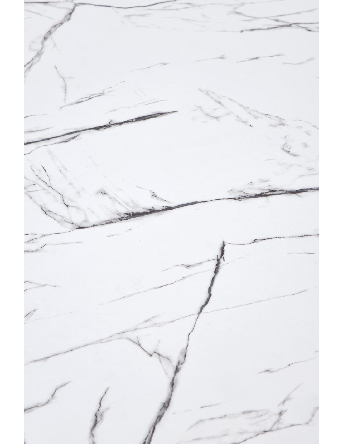 Blat jest wykonany z MDF okleinowanego w kolorze biały marmur, a podstawa z malowanej proszkowo stali.
