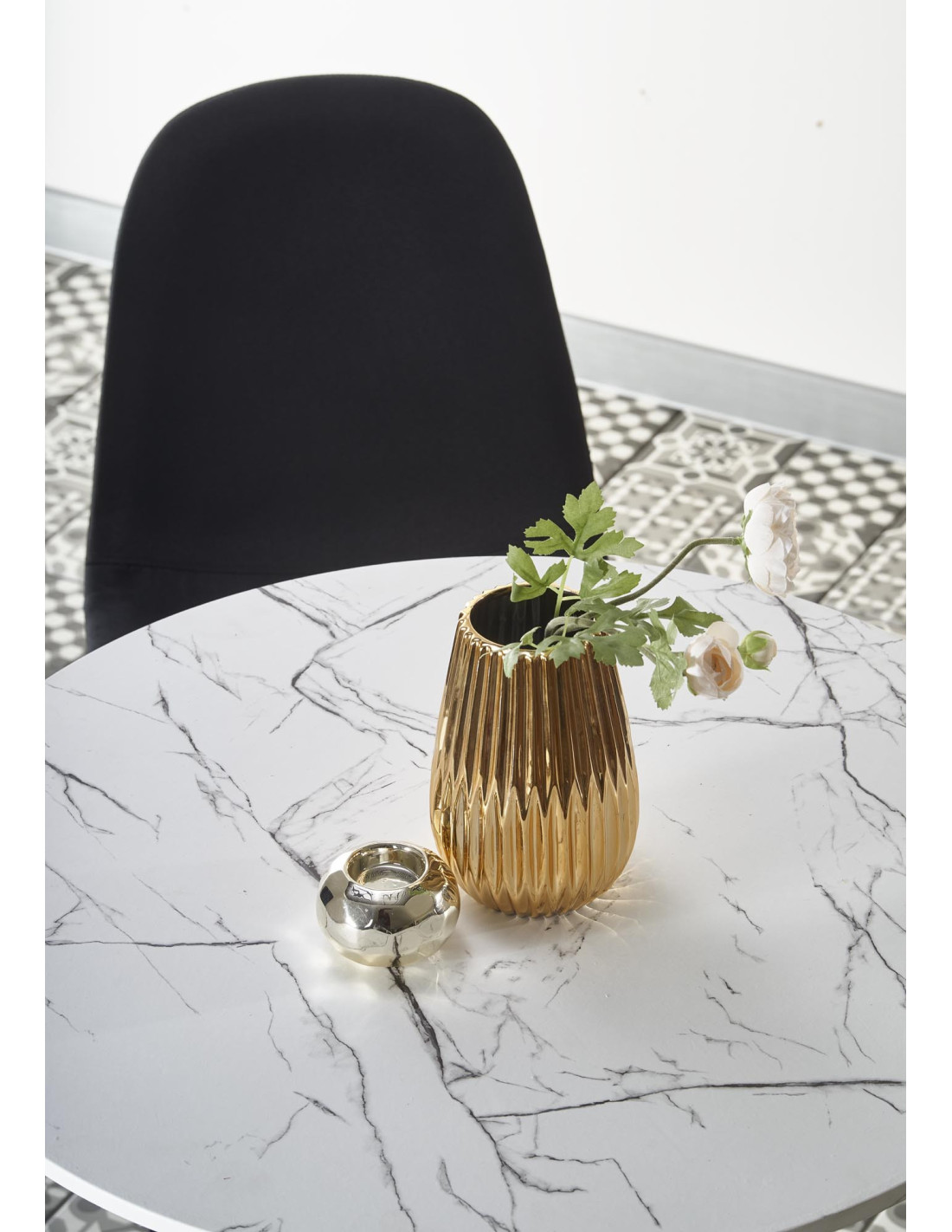 Stół DENVER wyróżnia się eleganckim białym marmurowym blatem oraz minimalistyczną białą podstawą, co czyni go idealnym do nowoczesnych aranżacji.