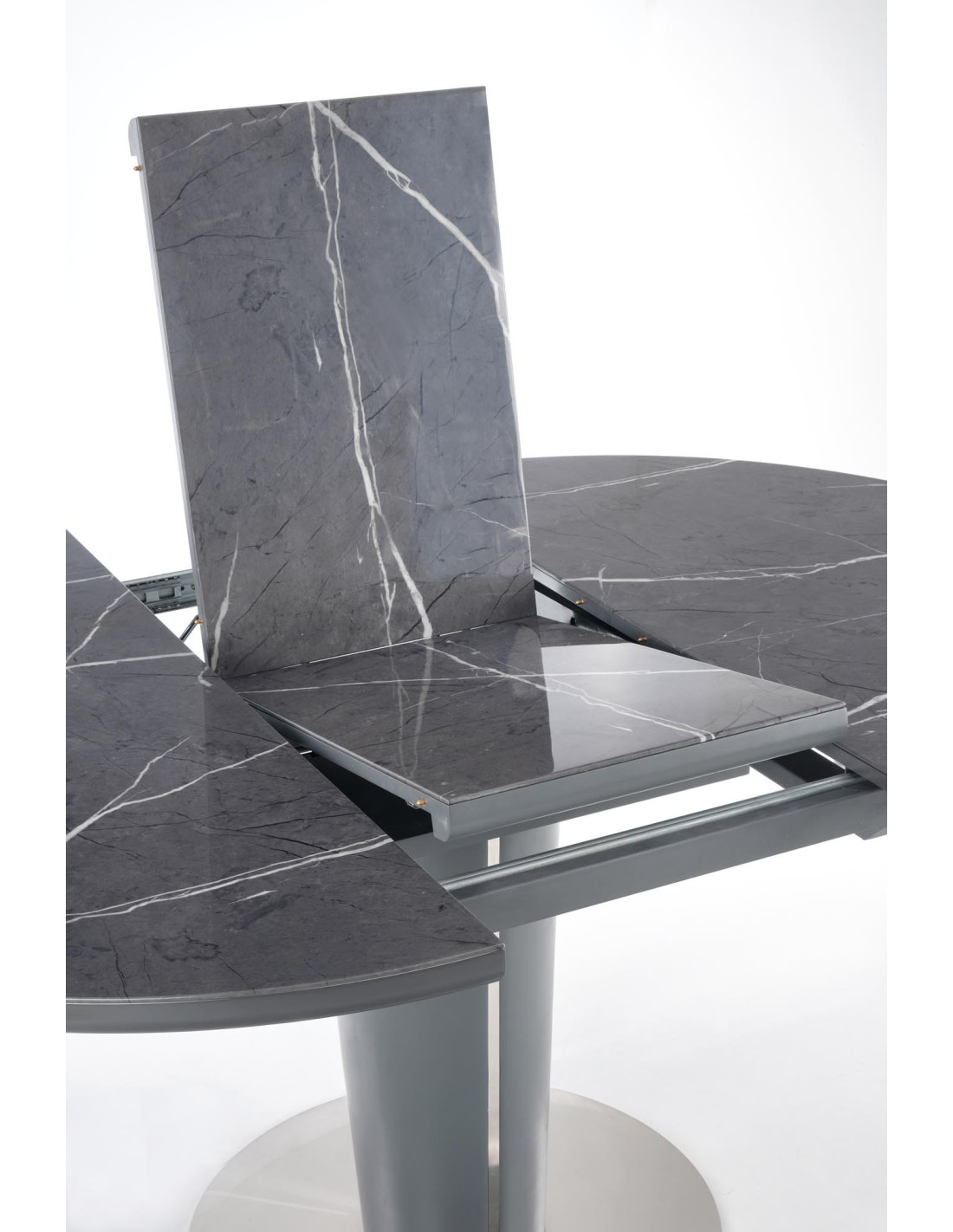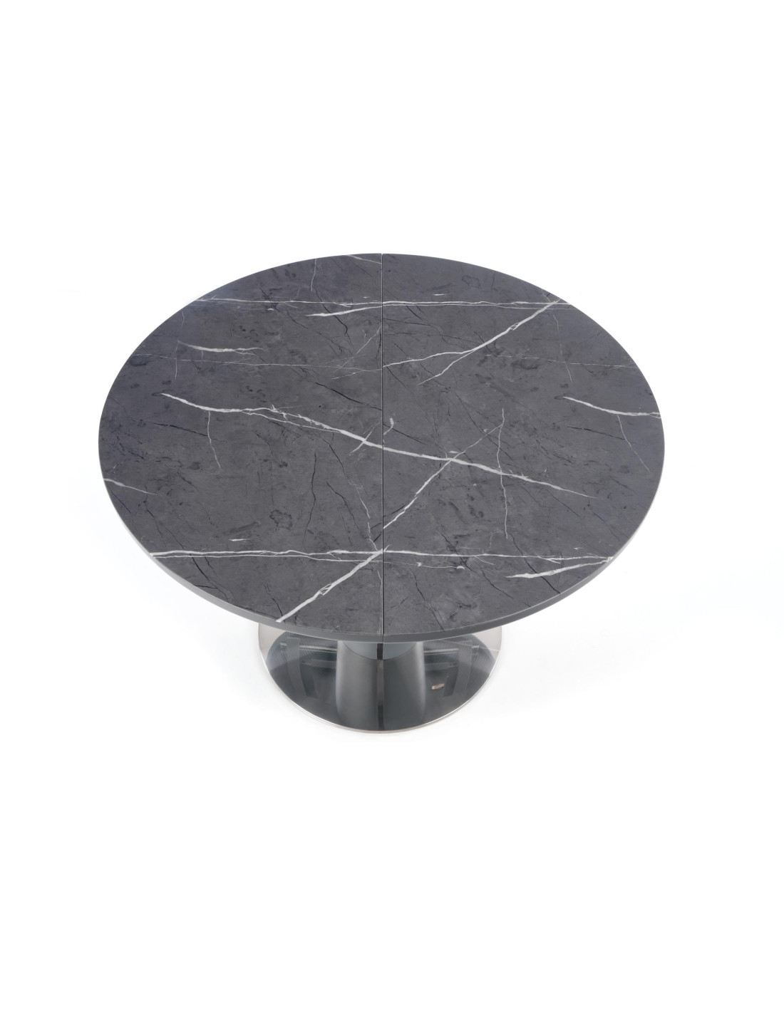 RICARDO Okrągły Stół Rozkładany 120-160cm Marmur/Stal Polerowana - Stylowy