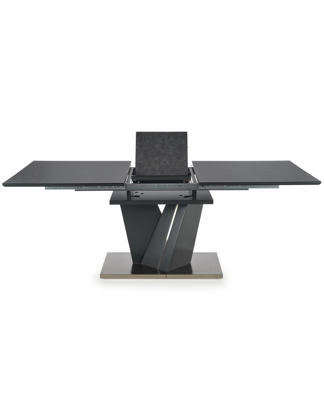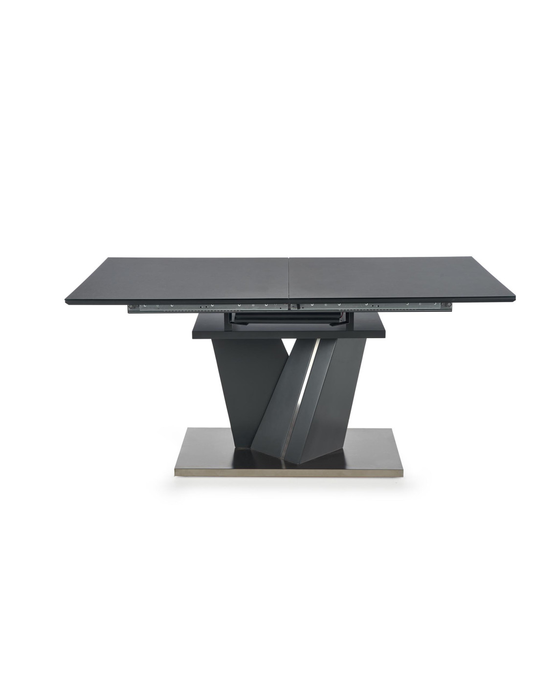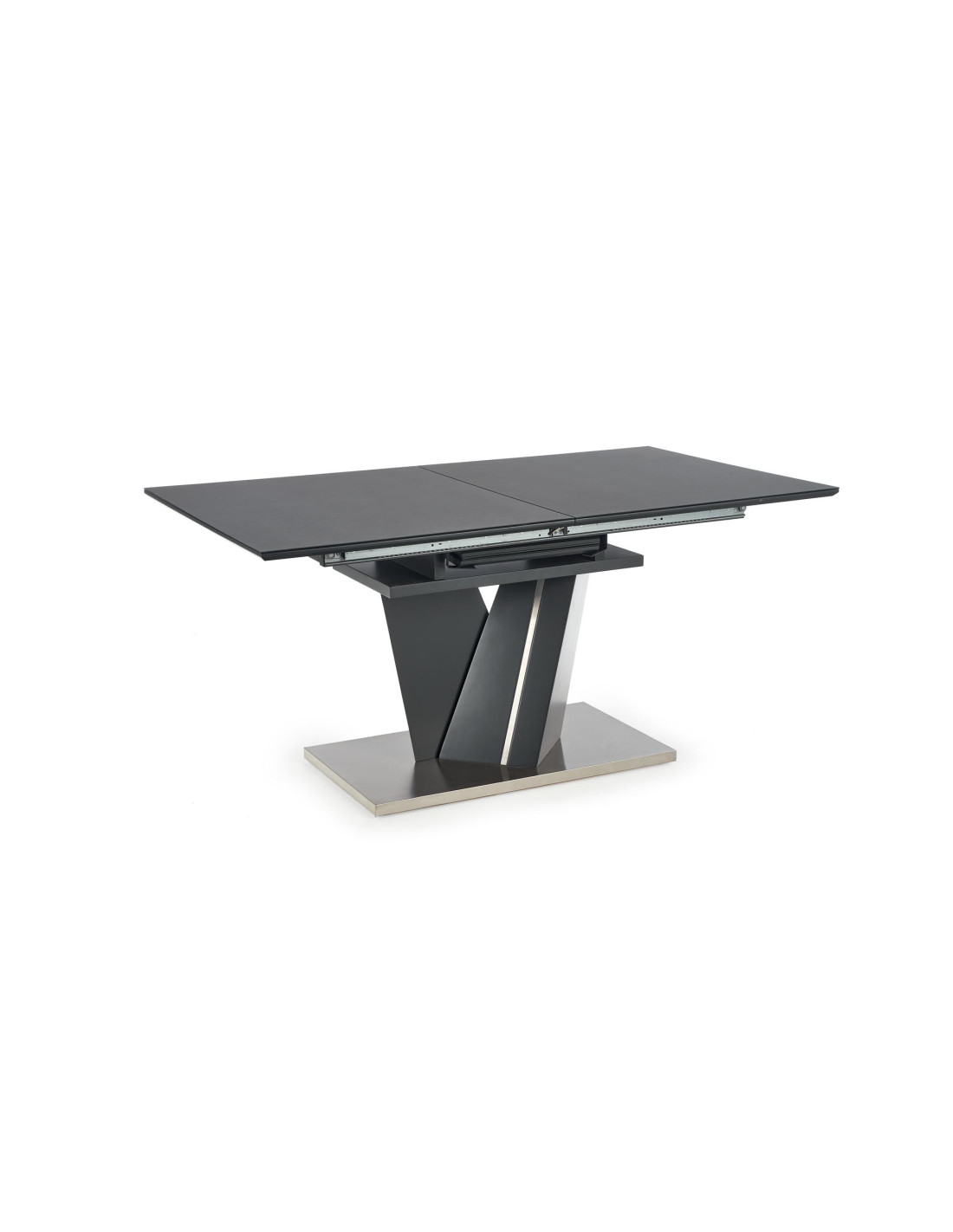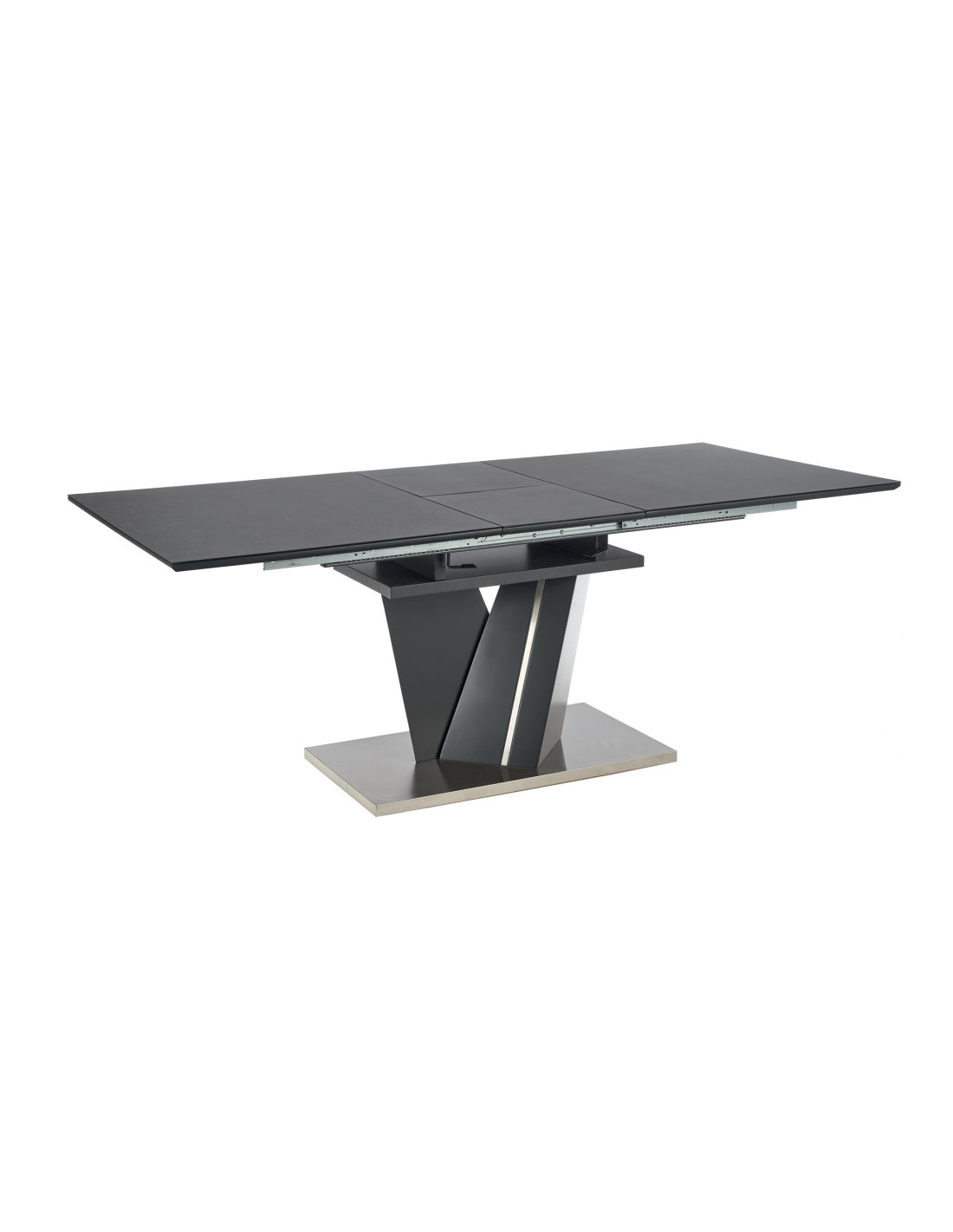 Zachwyć się rozszerzanym stołem SALVADOR, który łączy nowoczesny styl z praktycznością! Ten stół, w eleganckim ciemnym popielu, wykonany z wysokiej jakości szkła oraz płyty MDF, stanowi doskonały wybór do każdego wnętrza. Jego prostokątny kształt i solidna, geometryczna podstawa w kształcie litery V nadają mu wyjątkowego charakteru, idealnie wpisując się w nowoczesne aranżacje.