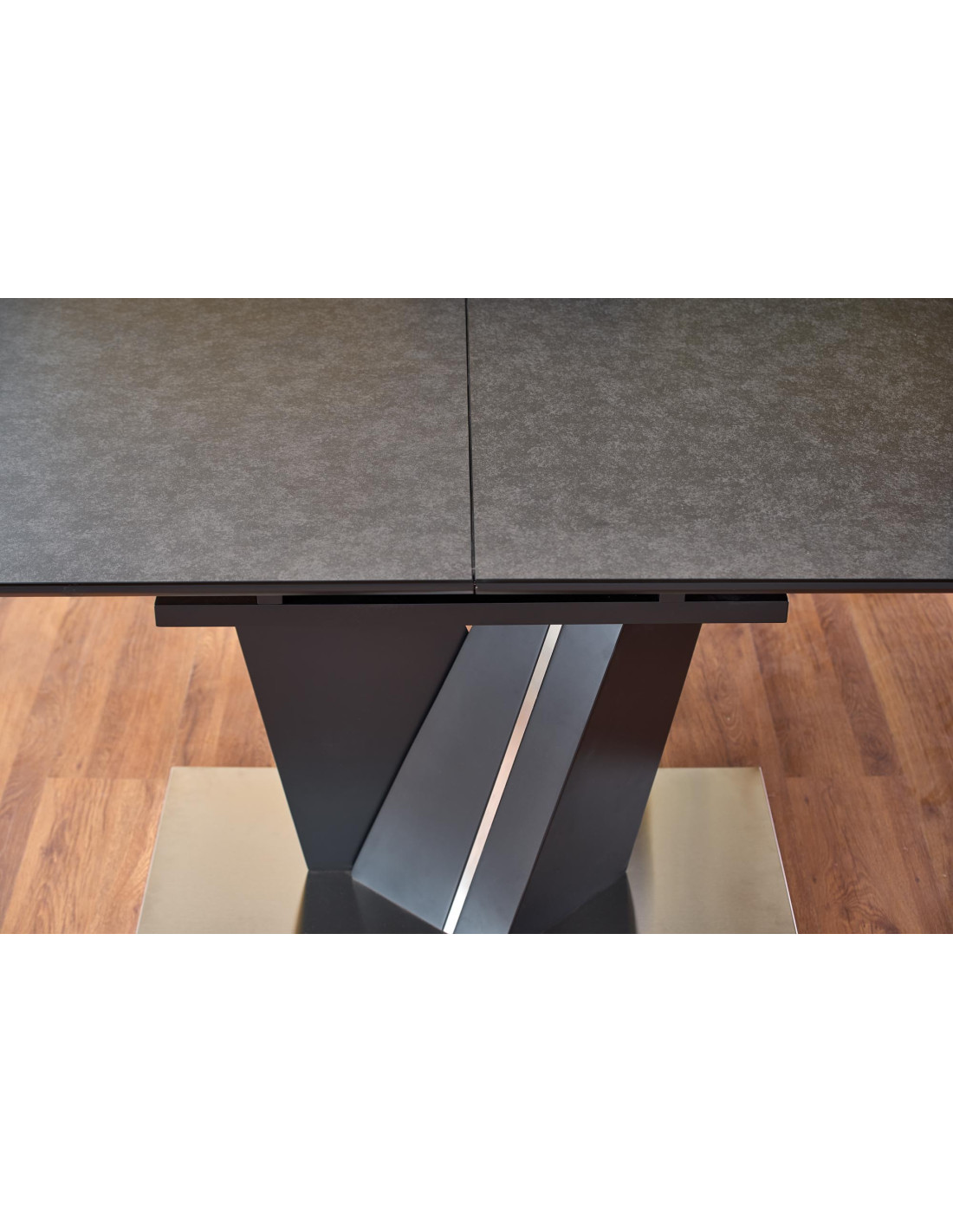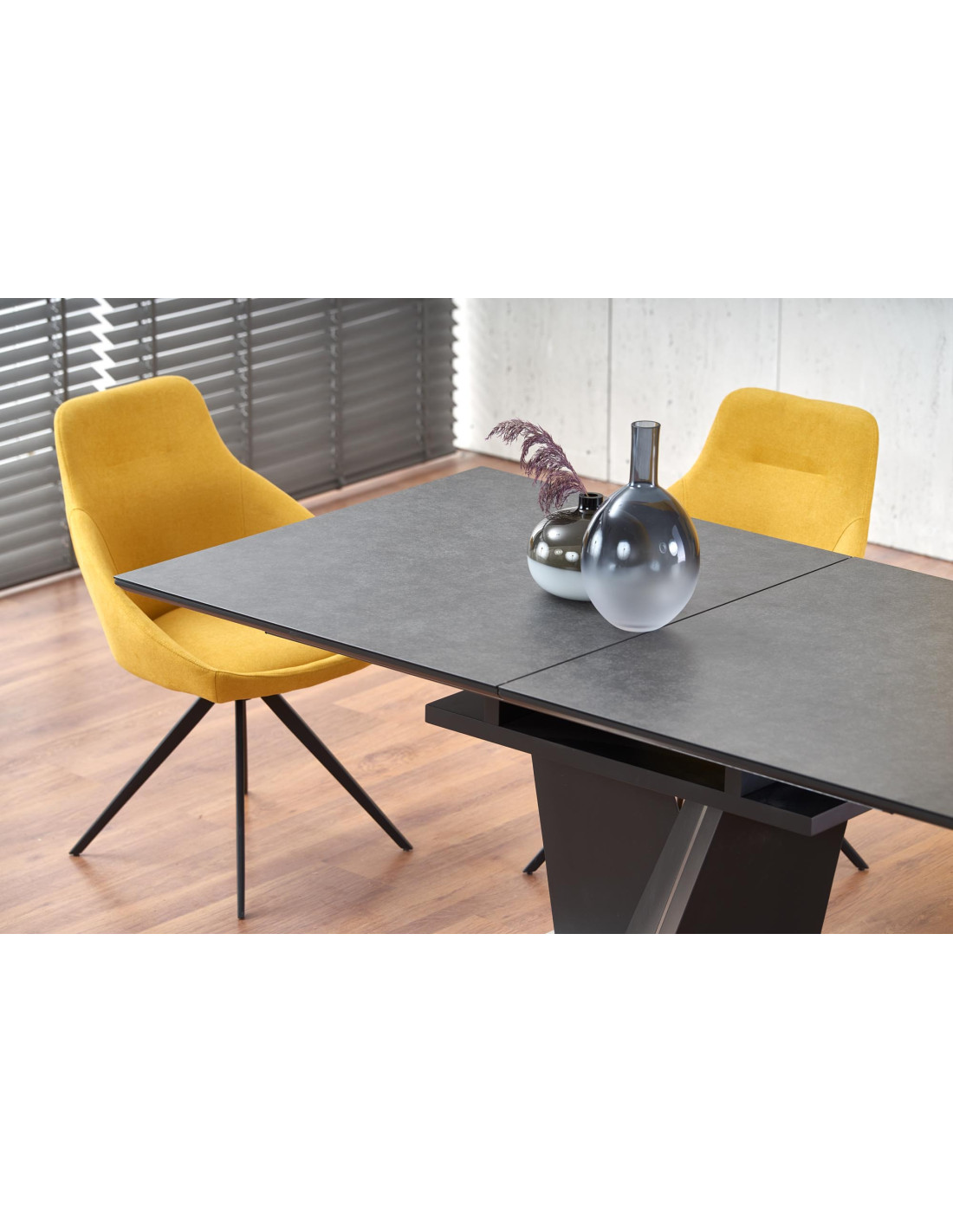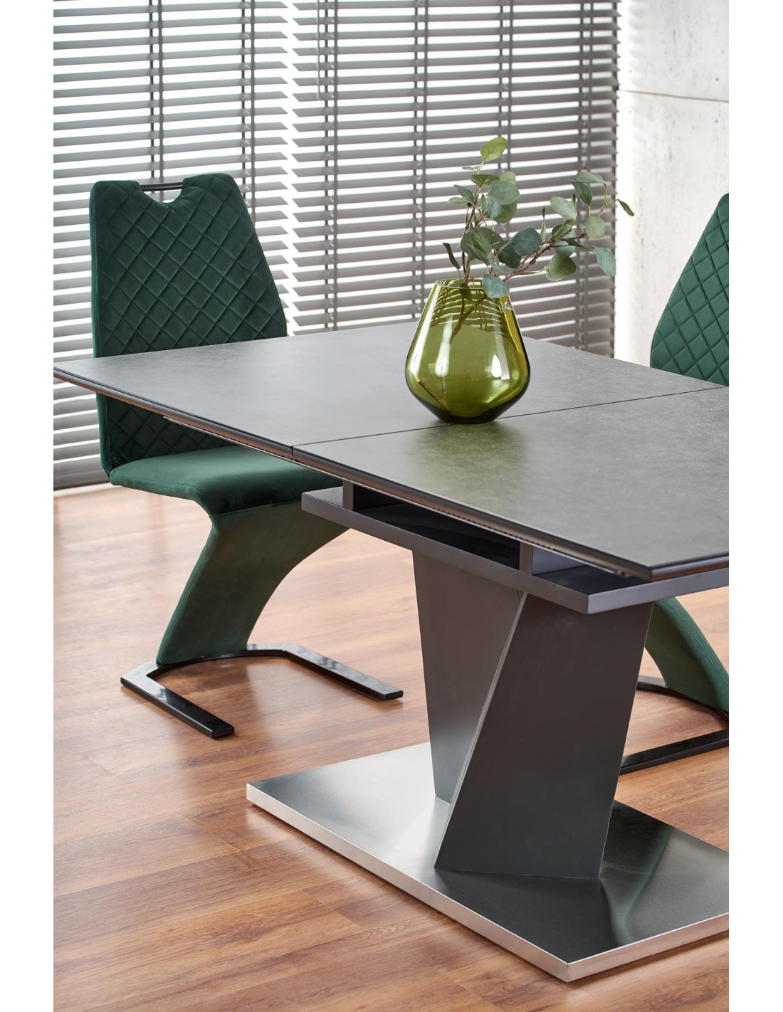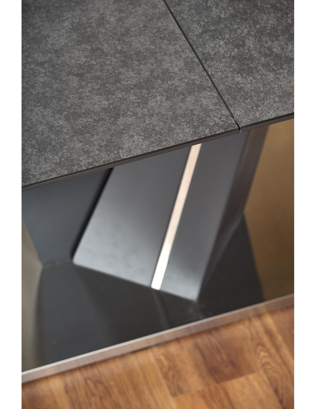 Zachwyć się rozszerzanym stołem SALVADOR, który łączy nowoczesny styl z praktycznością! Ten stół, w eleganckim ciemnym popielu, wykonany z wysokiej jakości szkła oraz płyty MDF, stanowi doskonały wybór do każdego wnętrza. Jego prostokątny kształt i solidna, geometryczna podstawa w kształcie litery V nadają mu wyjątkowego charakteru, idealnie wpisując się w nowoczesne aranżacje.