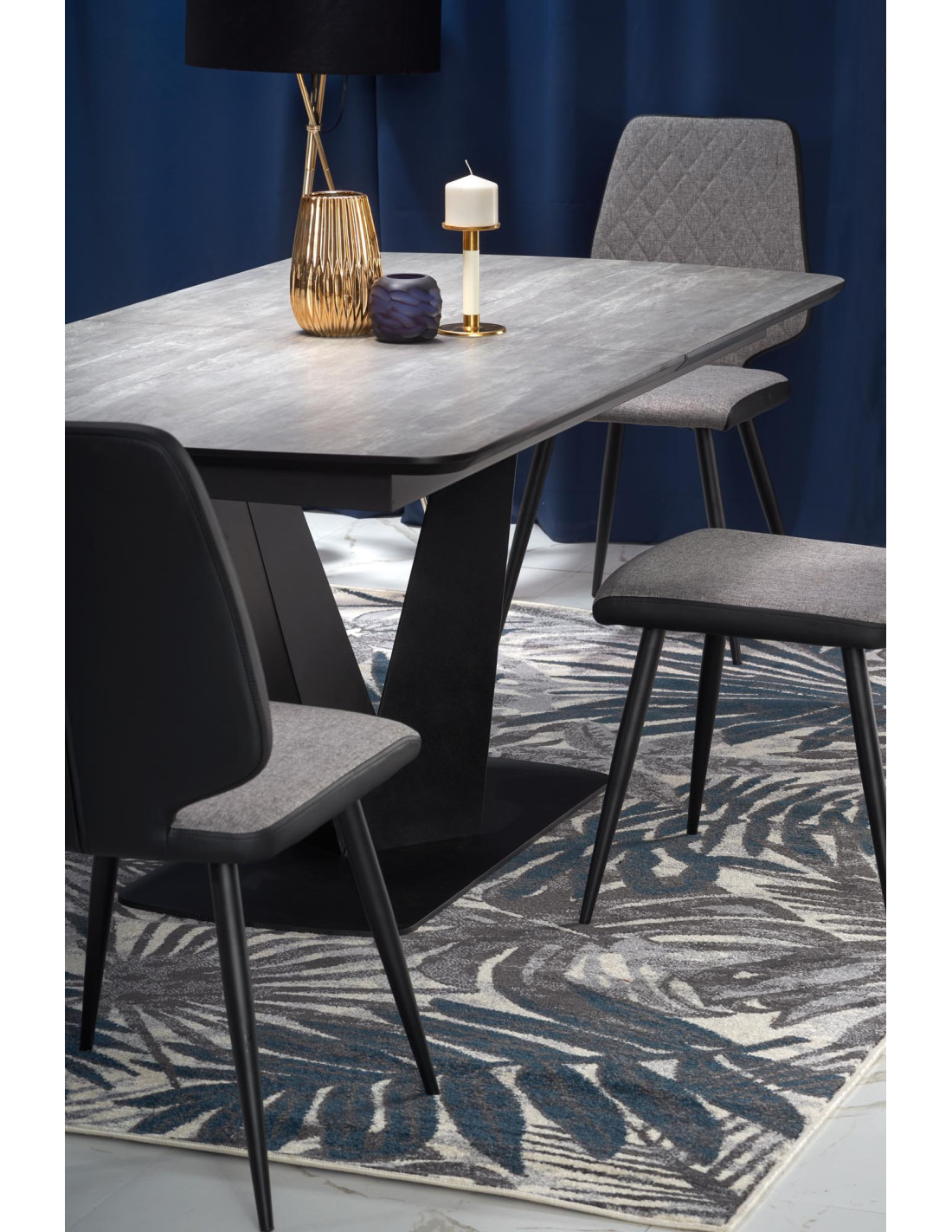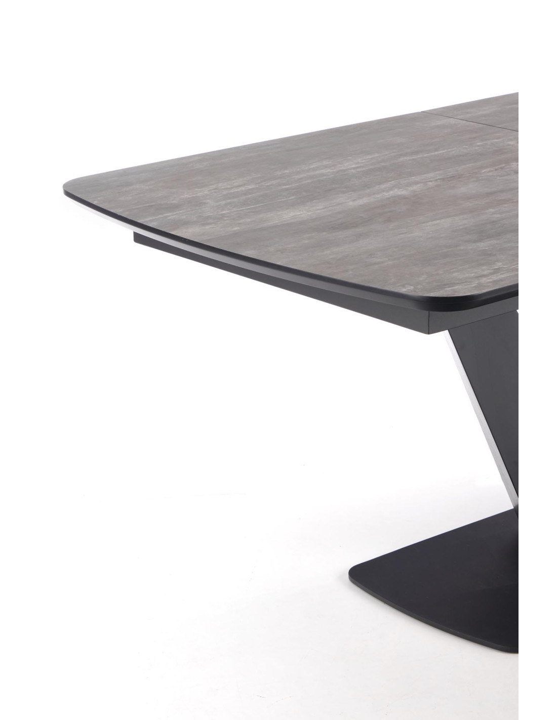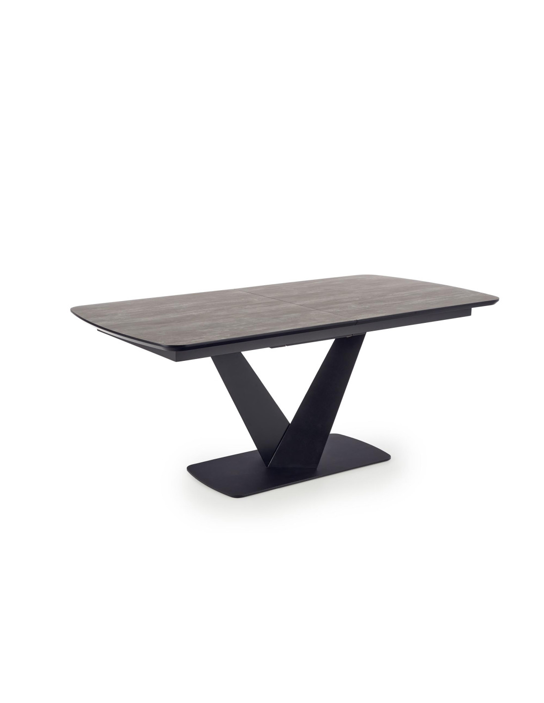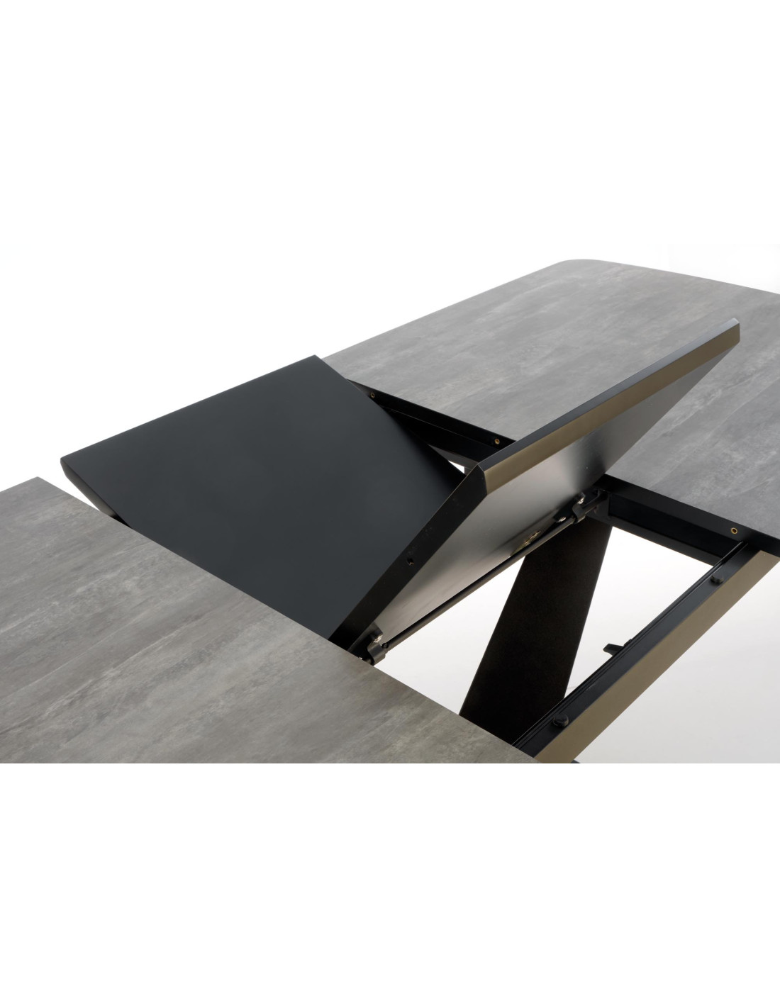 Zainspiruj się rozszerzanym stołem VINSTON, który łączy w sobie minimalistyczny design z nowoczesną funkcjonalnością! Jego prostokątny kształt z zaokrąglonymi rogami wprowadza świeżość do przestrzeni, a ciemnopopielaty blat, wykonany z MDF lakierowanego i płyty HPL, nadaje mu elegancki wygląd. Czarne nogi w kształcie litery "V" nie tylko przyciągają wzrok, ale także zapewniają stabilność i nowoczesny akcent do każdego wnętrza.