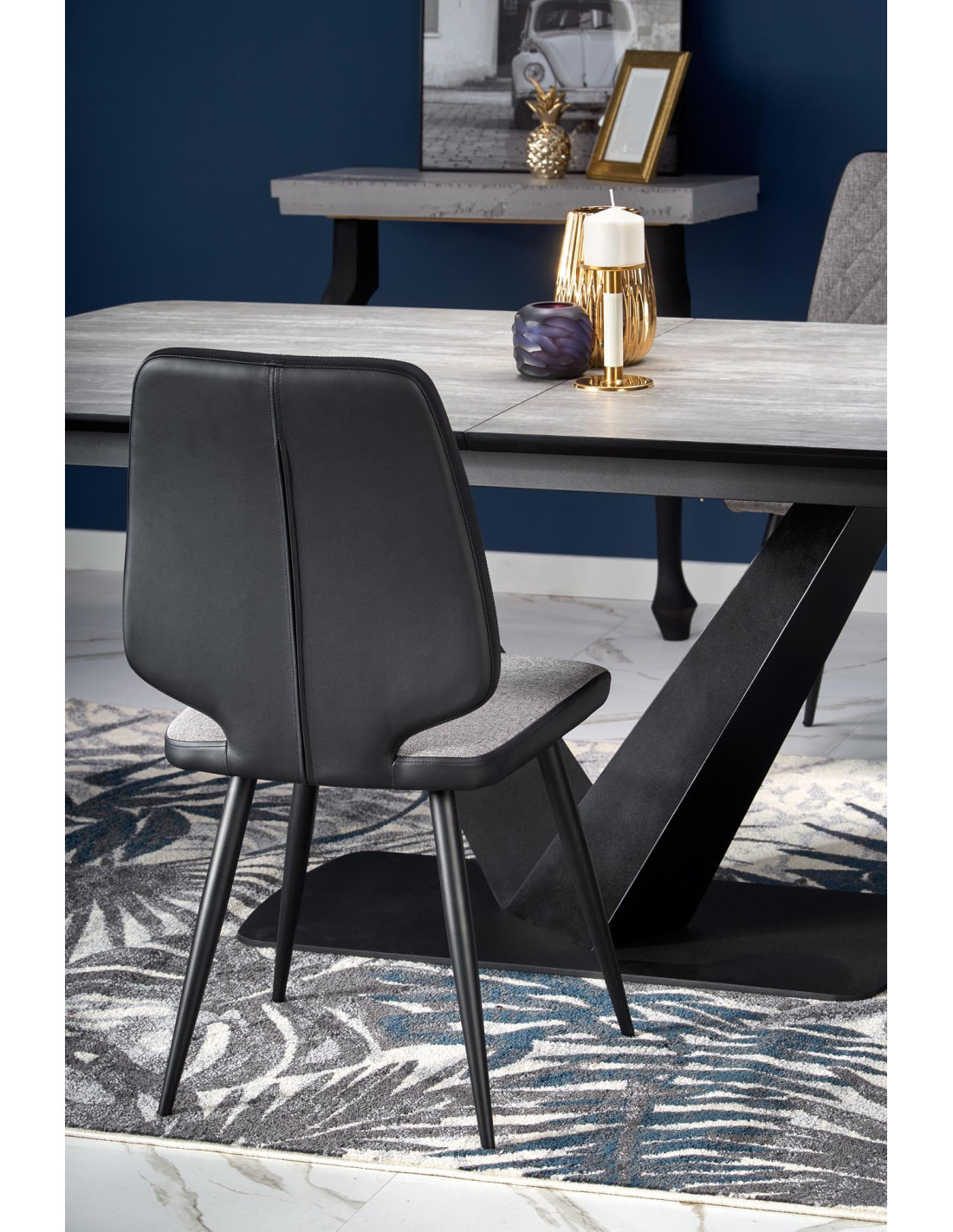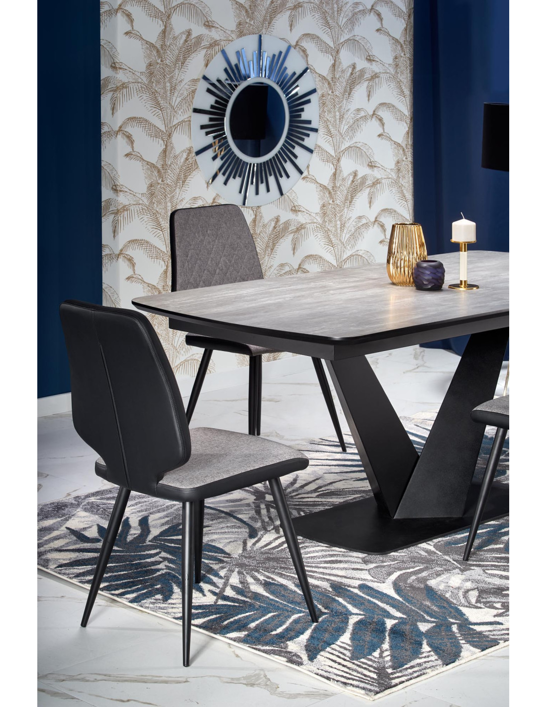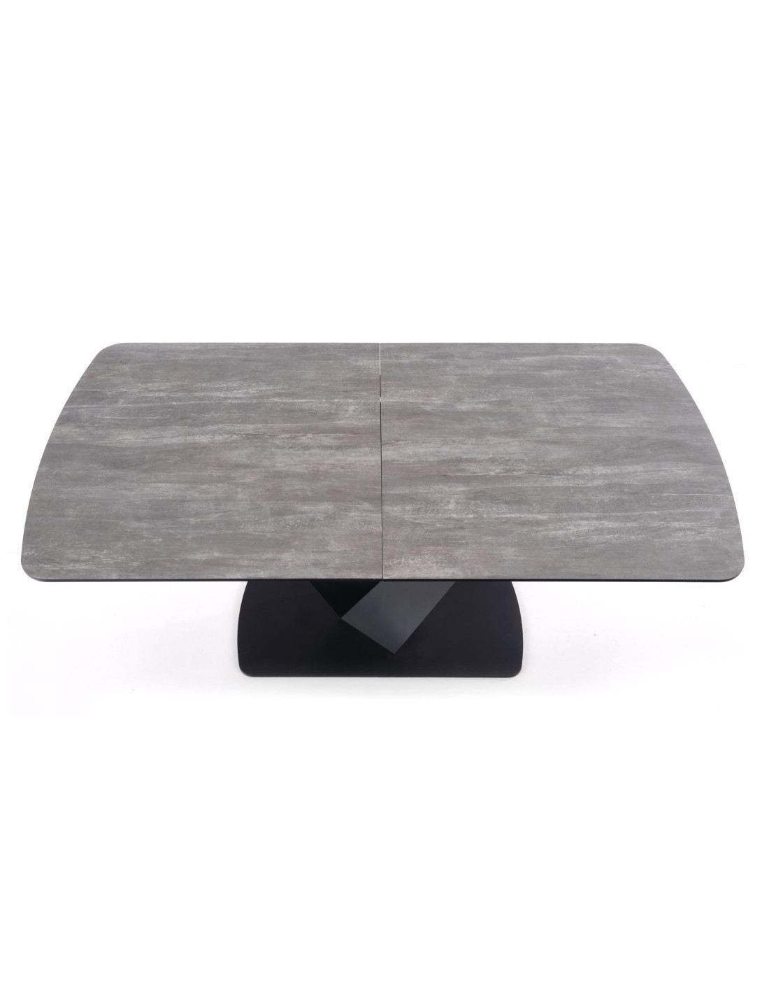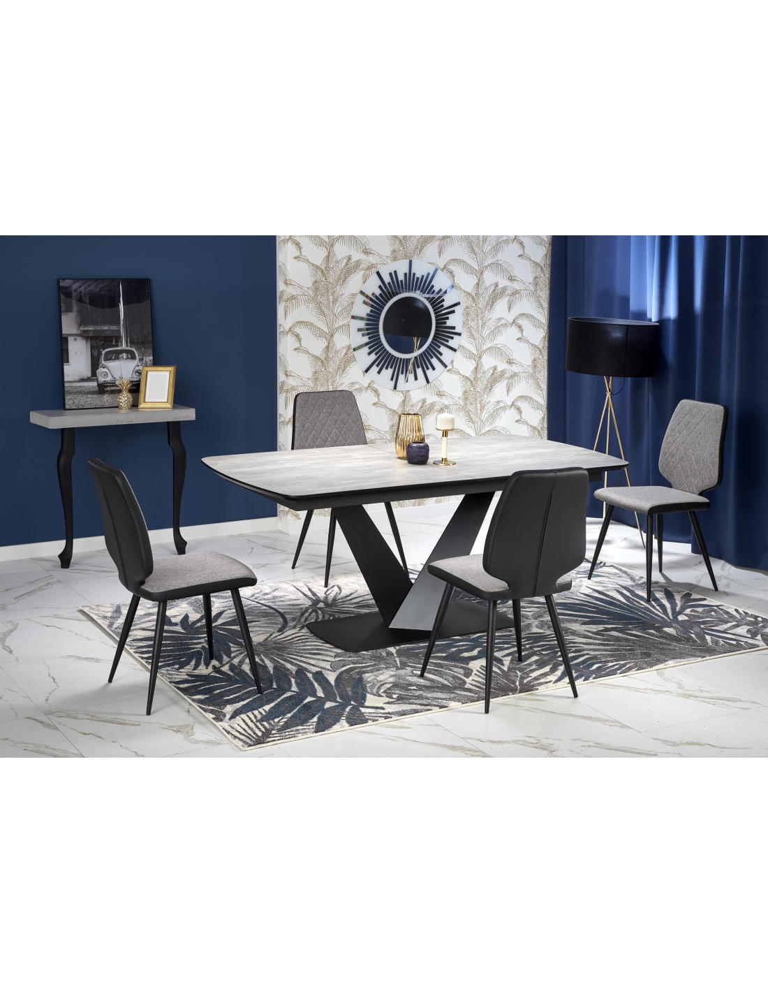 Zainspiruj się rozszerzanym stołem VINSTON, który łączy w sobie minimalistyczny design z nowoczesną funkcjonalnością! Jego prostokątny kształt z zaokrąglonymi rogami wprowadza świeżość do przestrzeni, a ciemnopopielaty blat, wykonany z MDF lakierowanego i płyty HPL, nadaje mu elegancki wygląd. Czarne nogi w kształcie litery "V" nie tylko przyciągają wzrok, ale także zapewniają stabilność i nowoczesny akcent do każdego wnętrza.