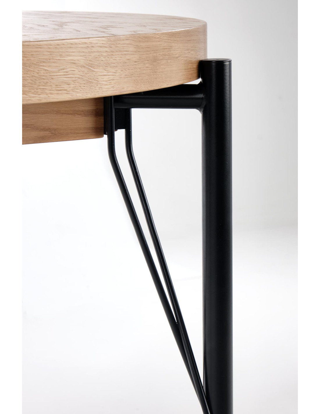 - ✅ Wysokiej jakości materiały: Blat z MDF pokryty naturalną okleiną dębową oraz stalowe nogi malowane proszkowo zapewniają estetyczny i trwały wygląd.