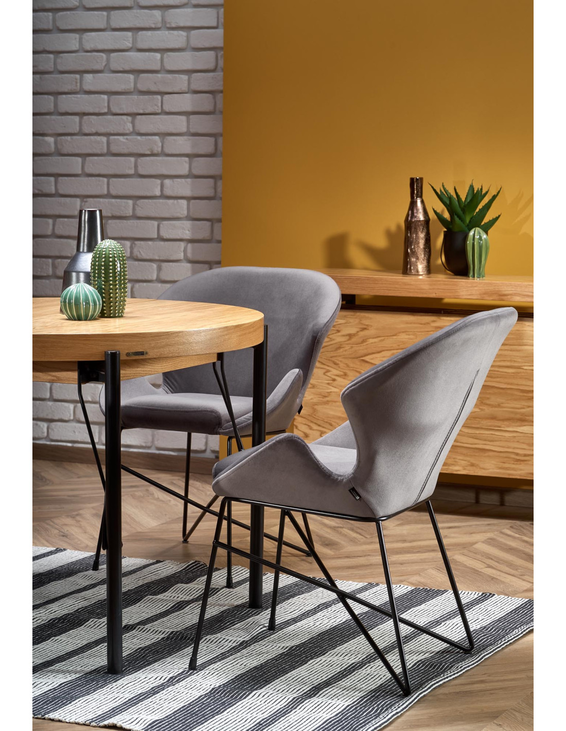 Stół INFERNO wykonany jest z MDF pokrytego naturalną okleiną dębową oraz stalowych nóg malowanych proszkowo, co zapewnia estetyczny wygląd.