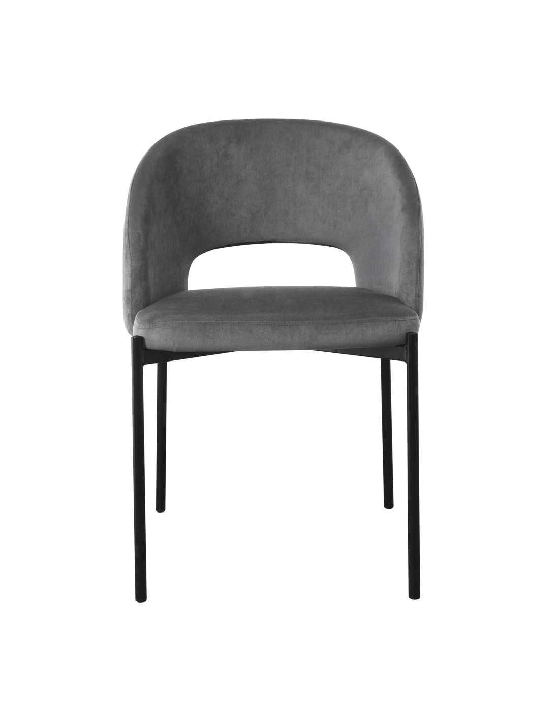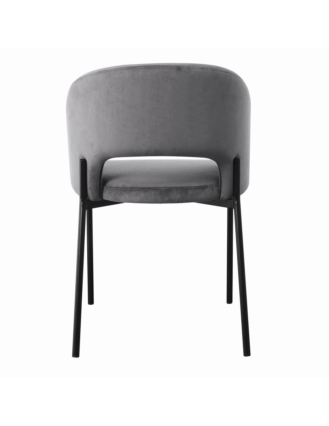 Wzbogać swoje wnętrze krzesłem K455, które harmonijnie łączy minimalizm z elegancją. To nowoczesne krzesło tapicerowane popielatym welurem zachwyca zaokrąglonym oparciem z otworem, które dodaje mu charakteru. Smukłe, czarne nogi wykonane ze stali malowanej proszkowo wprowadzają lekkość do każdej aranżacji, a jego stylowy wygląd sprawia, że doskonale wpisuje się w współczesne wnętrza.