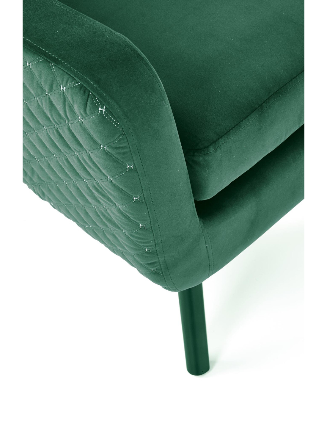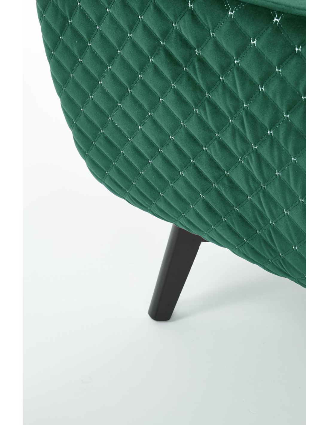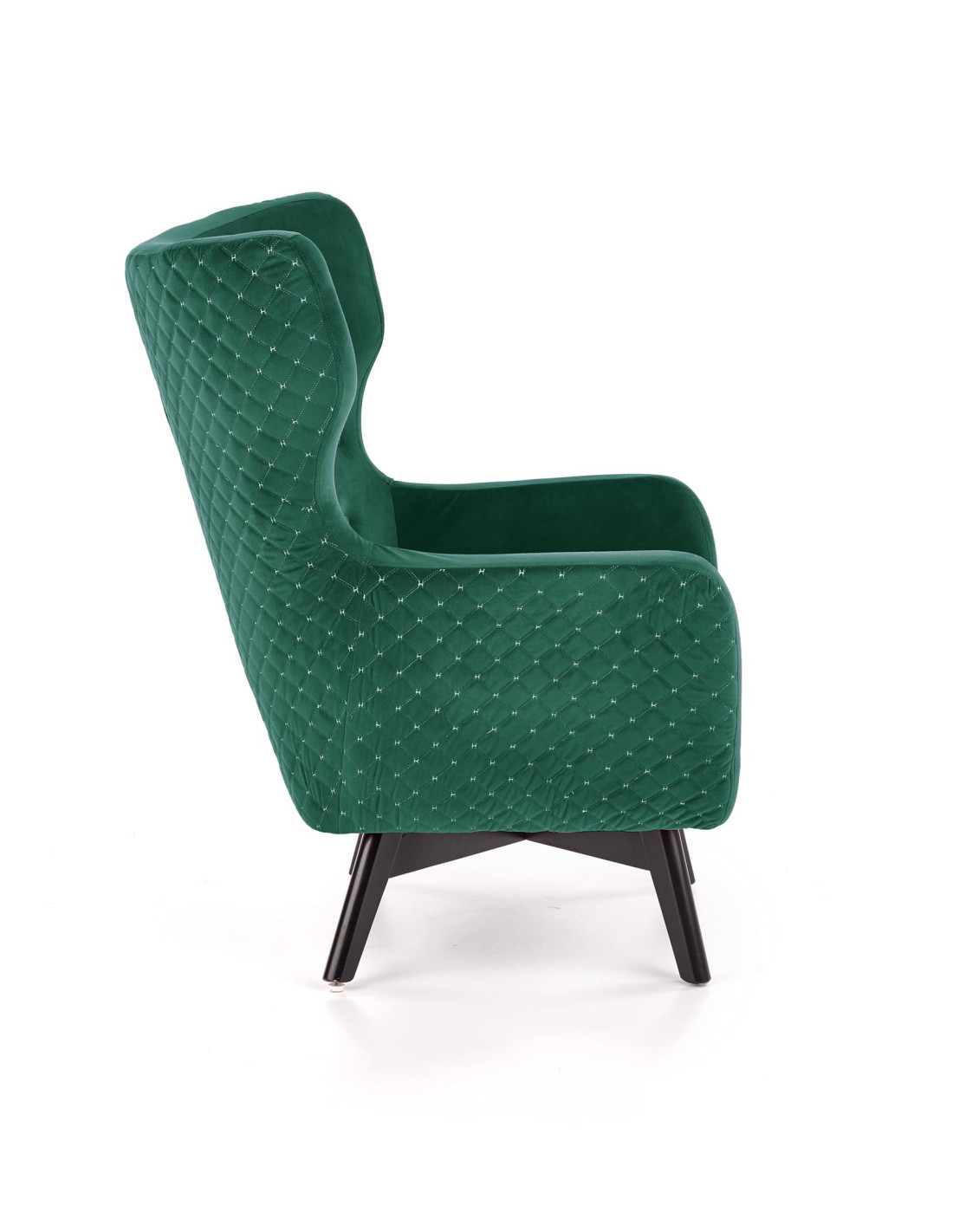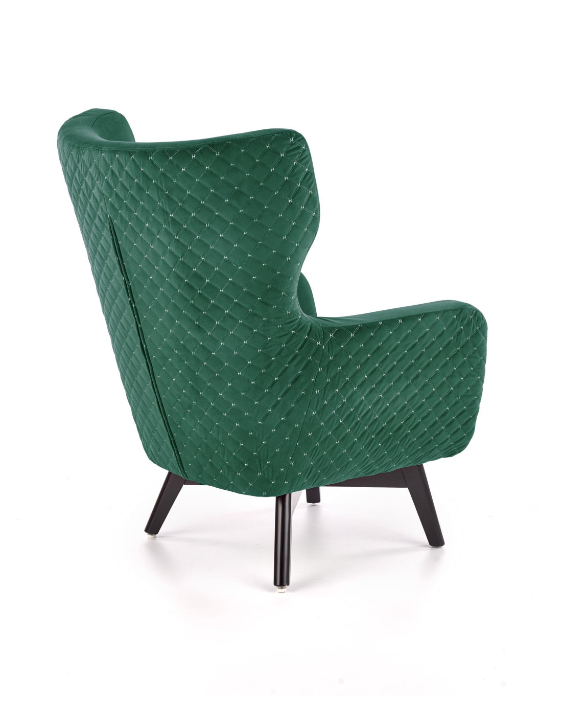 Przedstawiamy Ci fotel wypoczynkowy MARVEL, który harmonijnie łączy luksusowy design z wyjątkowym komfortem. Jego wysokie oparcie, ozdobione charakterystycznym pikowaniem w kształcie guzików, oraz wyprofilowane boczne oparcia, zapewniają doskonałe wsparcie dla pleców podczas relaksu. Aksamitna tapicerka w ciemnozielonym odcieniu nadaje mu elegancji, a lekko rozchylone nogi z czarnego drewna dodają całości nowoczesnego charakteru.